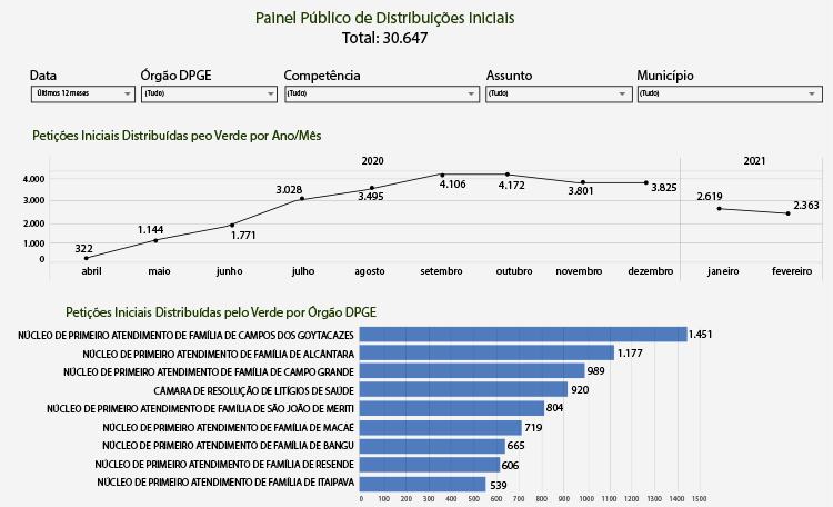 Painel de Petições Iniciais Distribuídas- análise dos dados sobre as petições iniciais distribuídas pelo VERDE