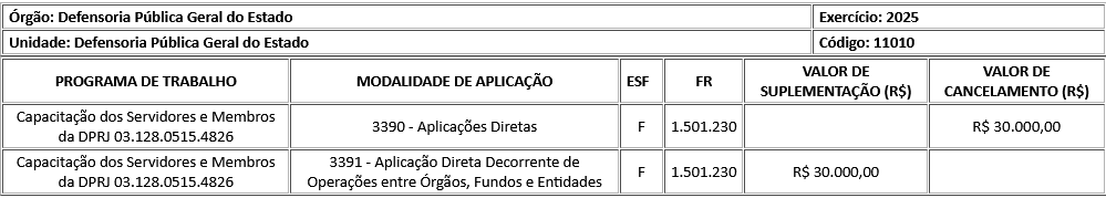 Art. 1º - Fica parcialmente alterado, na forma do Anexo, o Quadro de Detalhamento das Despesas da Defensoria Pública do Estado do Rio de Janeiro para o exercício financeiro de 2025.