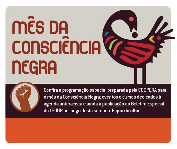 A Coordenação de Promoção da Equidade Racial (COOPERA) da Defensoria Pública do Rio de Janeiro (DPRJ) organizou uma programação especial para a promoção da agenda antirracista no mês da consciência negra. Durante os próximos dias de novembro, serão realizados cinco eventos, entre 13 e 27, que buscam dar visibilidade e qualificar o trabalho da instituição na luta por igualdade racial.