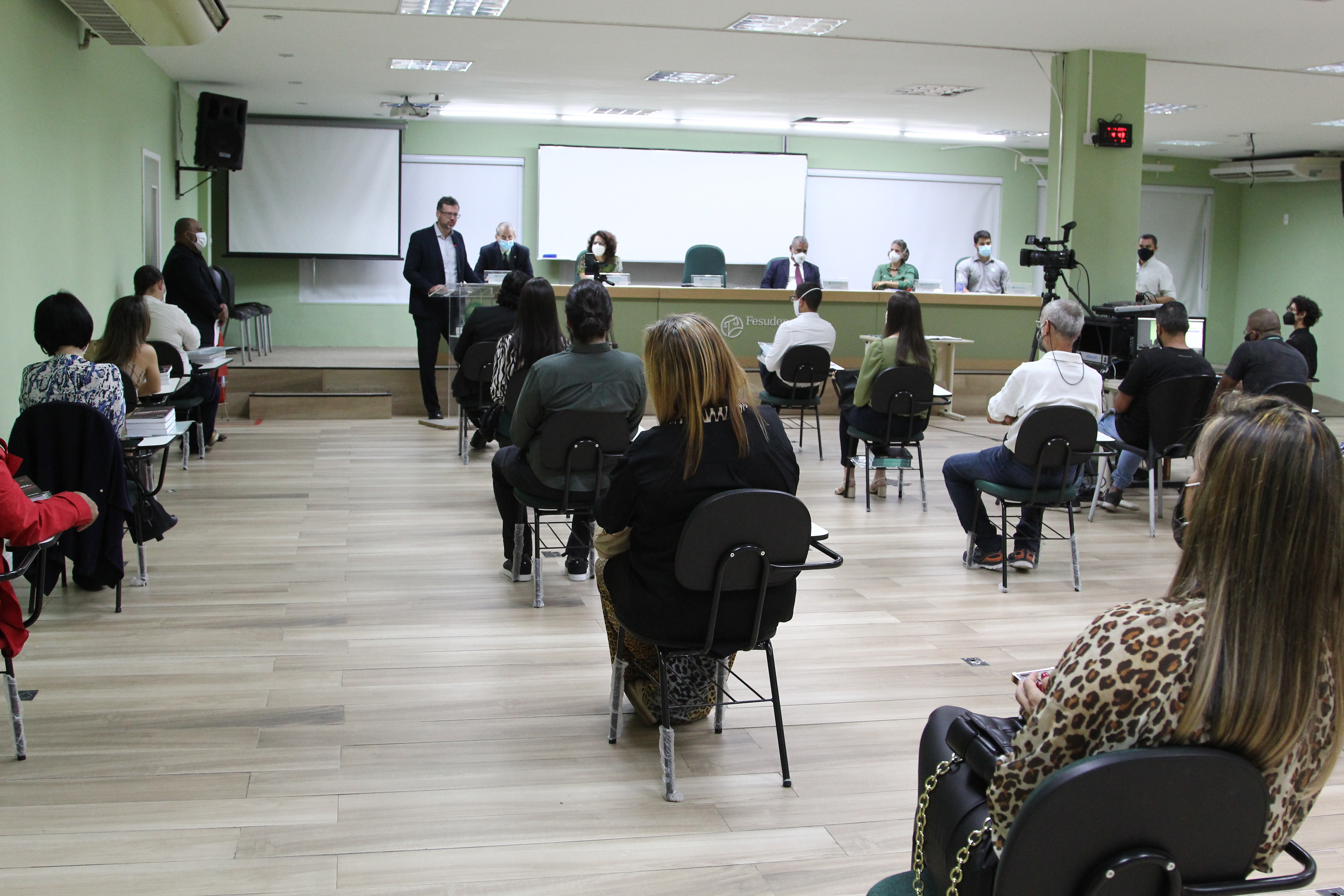 Também estavam presentes no evento a subcorregedora geral, Simone Mendes; a diretora de capacitação do Cejur, Adriana Britto; o presidente da Fesudeperj, Arnaldo Goldemberg; e o presidente da associação dos(as) servidores(as), Gustavo Belmonte.