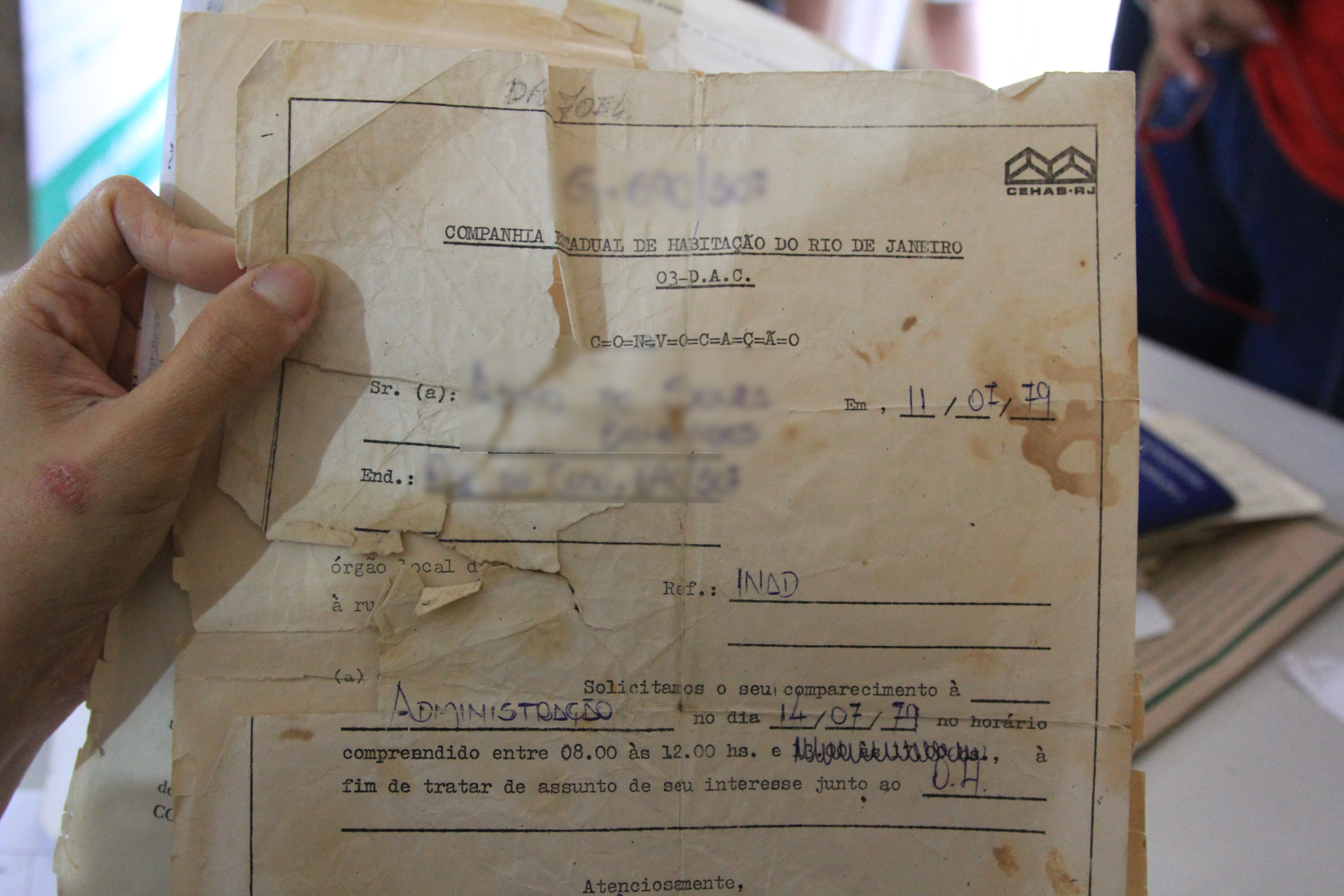 A gentrificação de bairros da Zona Sul da cidade também faz parte dessa história. Moradores que tiveram que sair de suas casas na extinta Favela do Pinto, nos anos 1960, por exemplo, estão entre alguns dos assistidos na ação social realizada pela Defensoria em Padre Miguel. Rosemar Benevides, é moradora do Conjunto Habitacional Dom Jaime e conta como a remoção das(os) trabalhadoras(es) do bairro da Gávea, no Rio, a levou para o lugar em que mora hoje.