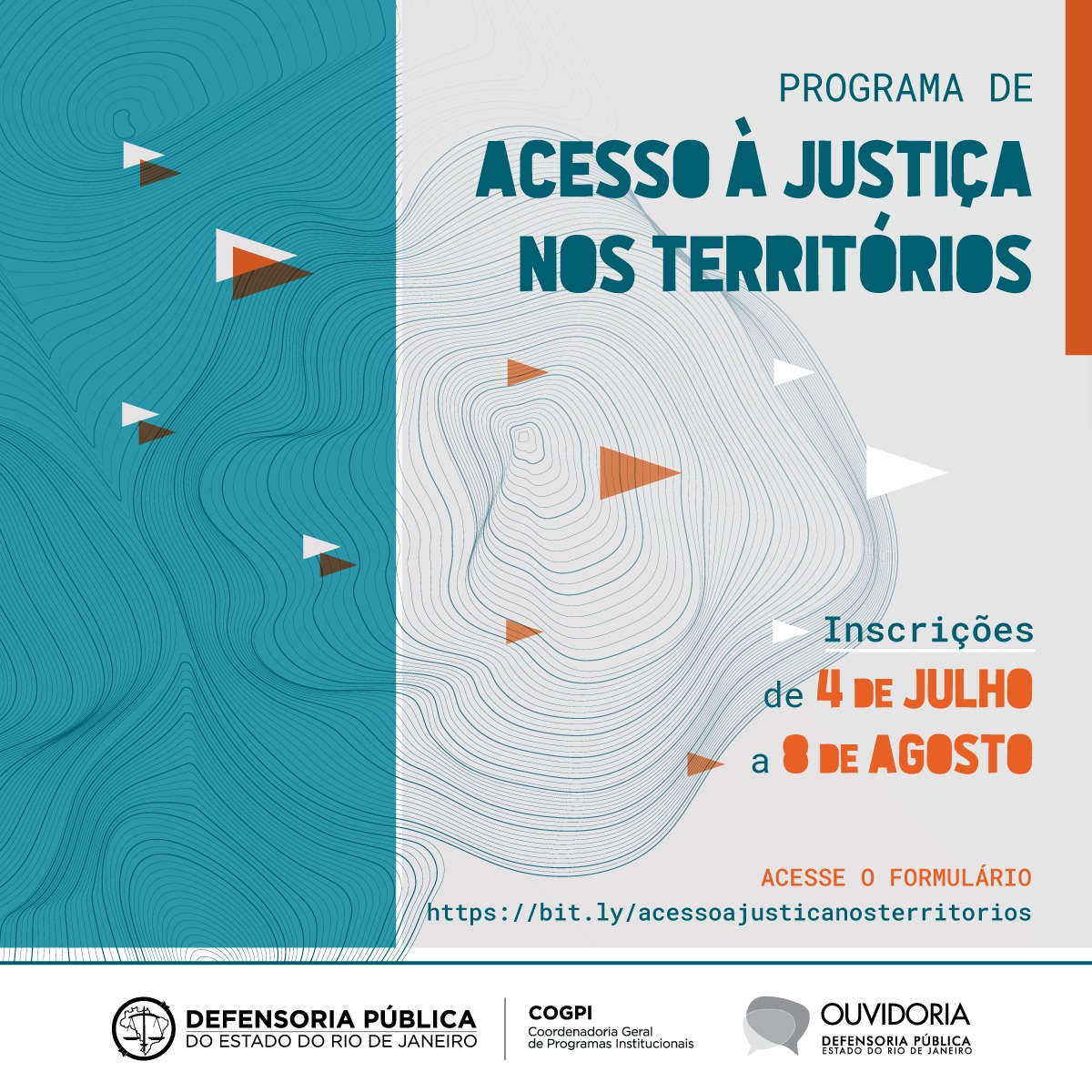 Todos os inscritos no edital passarão por uma capacitação sobre os caminhos do acesso à justiça. As pessoas formadas serão consideradas “parceiros(as) da Defensoria”. As capacitações ocorrerão nos dias 15, 22, 29 de agosto, 05 e 12 de setembro de 2022, de 18h às 20h, sobre os temas: “A proposta do Programa Acesso à Justiça nos Territórios”, “O que é a Defensoria?”, “Atendimento regular”, “Atendimento urgente”, “Outras situações”. O curso abordará os caminhos da justiça em diferentes cenários, como: urgência de saúde, questões de guarda, alimentos, acusação criminal, direito do consumidor, acesso à serviços básicos, política de moradia e direitos sociais. Integrantes da própria DPRJ participarão dos encontros.