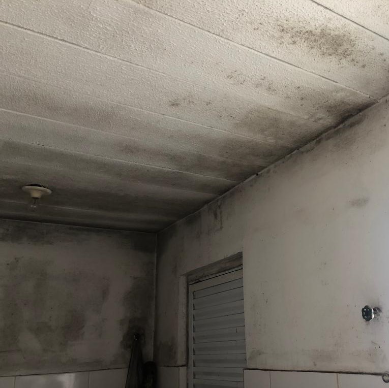 Desde a entrega das casas, ainda em 2016, a Defensoria tem recebido denúncias dos moradores sobre problemas estruturais nos imóveis como rachaduras, infiltrações e mofo nas paredes. Com a umidade cobrindo todo o teto de sua cozinha e do banheiro, Iara Dias relata que a situação tem causado problemas respiratórios nela e no marido.