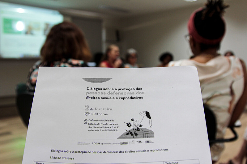 A Coordenadoria de Defesa dos Direitos da Mulher (Comulher) da Defensoria Pública do Rio de Janeiro (DPRJ) recebeu, na última semana (02), o encontro "Diálogos Sobre a Proteção de Pessoas Defensoras dos Direitos Sexuais e Reprodutivos". Promovido pelo Centro pela Justiça e o Direito Internacional (Cejil), o debate reuniu especialistas, organizações da sociedade civil e instituições do sistema de justiça, com o objetivo de discutir os principais desafios de quem defende os direitos sexuais e reprodutivos e pensar estratégias para evitar retrocessos e trazer avançar na garantia de direitos.