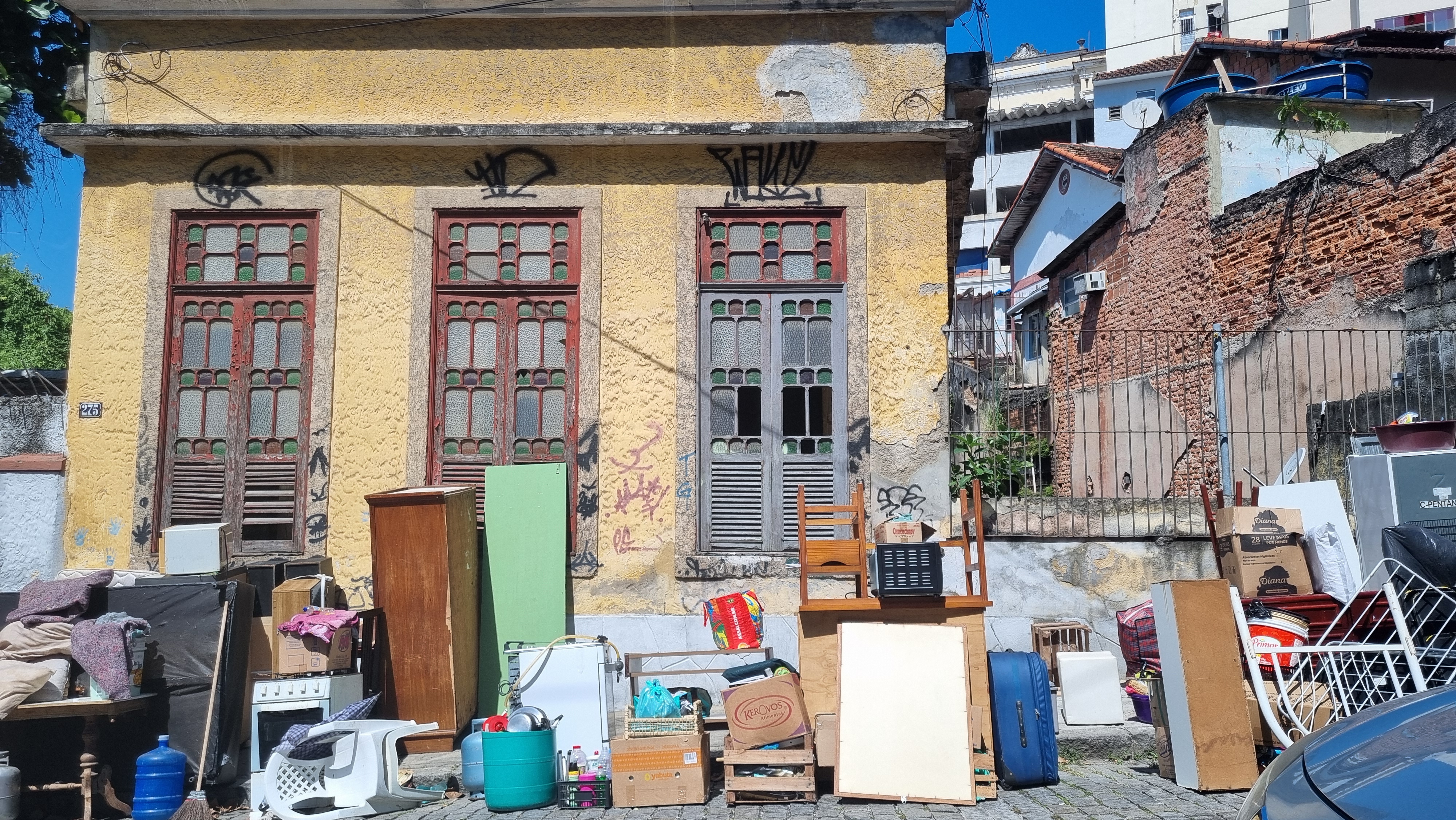 Móveis e eletrodomésticos deixados na Rua Costa Bastos 275, em Santa Teresa