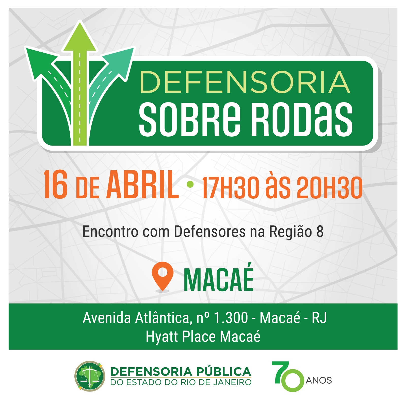 O encontro desta terça-feira (16) irá reunir defensores da Região 8 do Rio de Janeiro. Esta edição do Defensoria Sobre Rodas acontecerá no Hyatt Place, em Macaé. A reunião está marcada para começar às 17h30 e terminar às 20h30, com as presenças da defensora pública-geral, Patrícia Cardoso, e do subdefensor público-geral, Marcelo Leão.