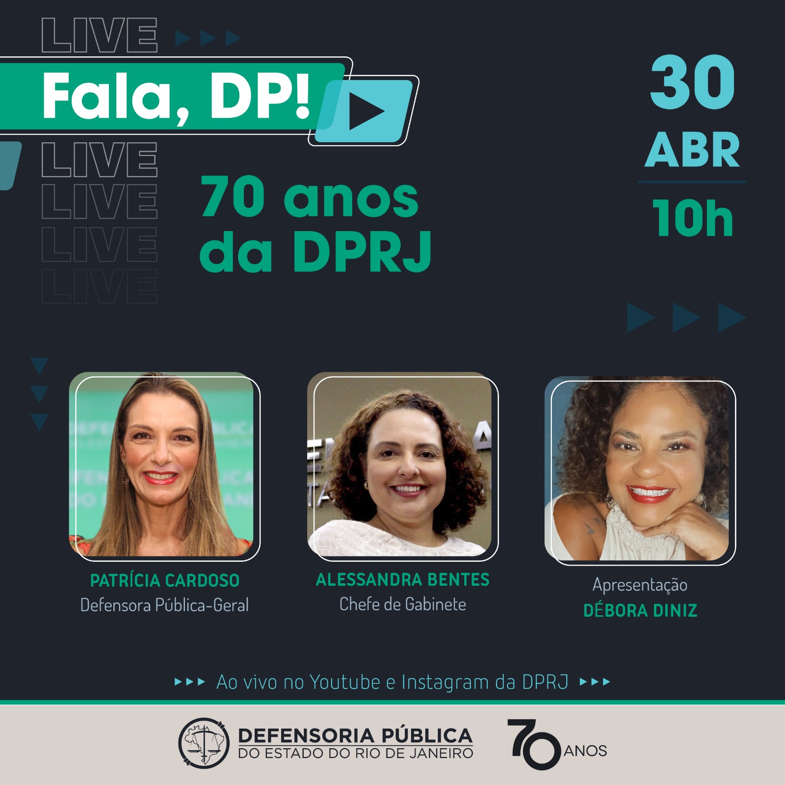 A Defensoria Pública do Estado do Rio de Janeiro (DPRJ) lançará, nesta terça-feira (30), o hotsite comemorativo de 70 anos da instituição. A nova plataforma digital será anunciada na live “Fala, DP!”, com transmissão pelo Instagram e pelo YouTube, a partir das 10h.