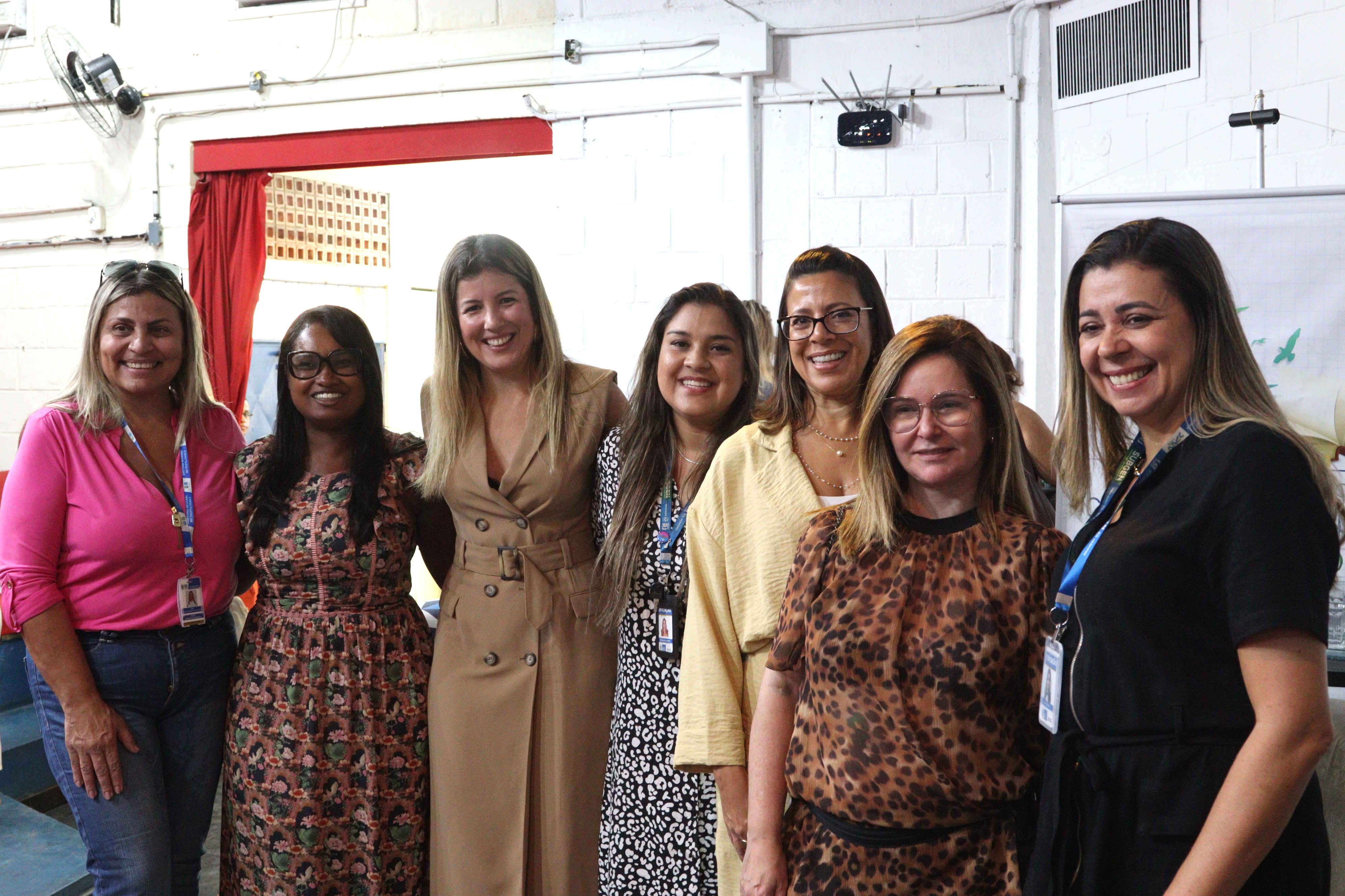 A palestra, direcionada para gestores escolares e professores, contou com a participação das defensoras públicas Flávia Nascimento, coordenadora de Defesa dos Direitos da Mulher (Comulher); Anne Caroline Nascimento, coordenadora do Núcleo de Combate ao Racismo e à Discriminação Étnico-Racial (Nucora); Isabela Menezes, coordenadora de Programas Institucionais (COGPI); e Lara Câmara Graça, titular na Coordenadoria de Defesa dos Direitos da Criança e do Adolescente (Cdedica).