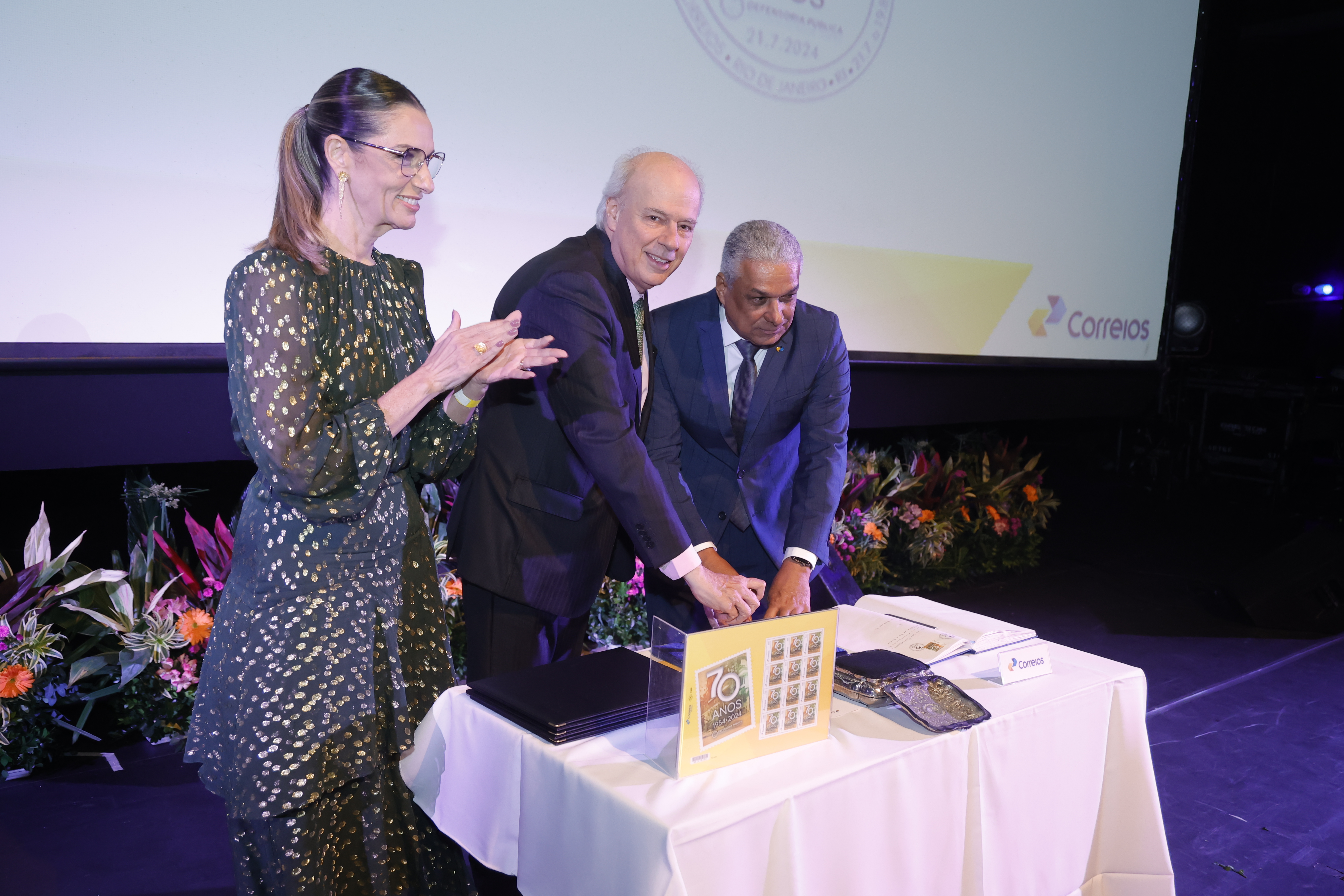 — É com grande alegria que os Correios participam desta celebração dos 70 anos da Defensoria. Este selo simboliza e imortaliza momentos, histórias e instituições que transformam a vida de milhares de brasileiras(os), transcendendo tempo e espaço rumo às futuras gerações. Assim, estamos não apenas homenageando esta nobre instituição, mas também despertando o interesse de colecionadores e apreciadores da arte da filatelia. A Defensoria tem sido, ao longo dessas sete décadas, um pilar fundamental para a garantia do acesso à justiça e promoção da cidadania. Parabéns a todas(os)! — celebrou José Oliveira dos Santos.
