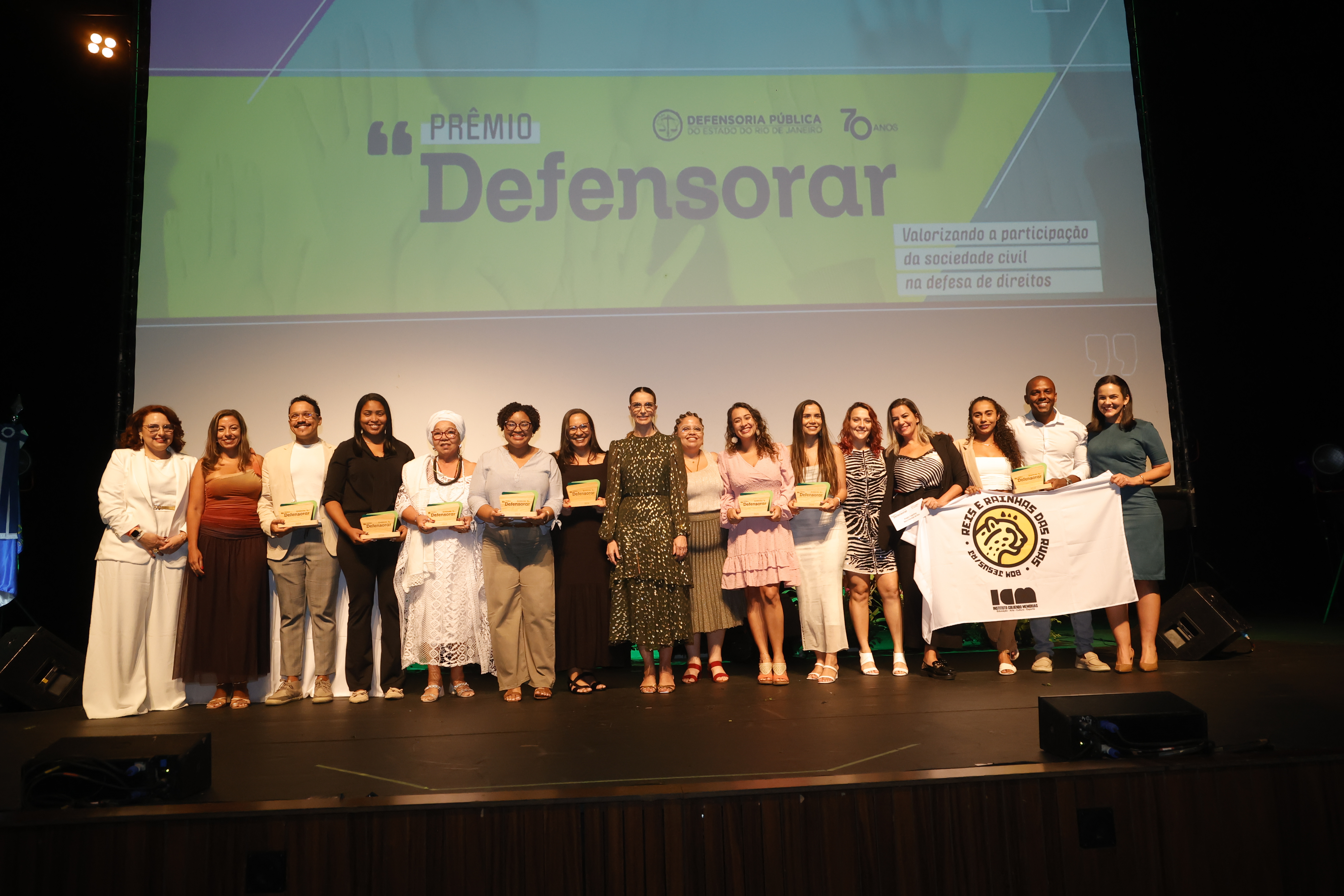 A solenidade seguiu com a entrega do Prêmio Defensorar, promovido pela Administração Superior, pelo Centro de Estudos Jurídicos (Cejur), pela Ouvidoria-Geral e pela Diretoria de Comunicação, com o objetivo de homenagear pessoas, iniciativas e organizações marcantes para a promoção de direitos. A escolha dos vencedores, feita por meio de plataforma on-line, foi aberta ao público e registrou mais de 2 mil votos. Cada vencedor recebeu troféu e ainda 2 mil reais.
