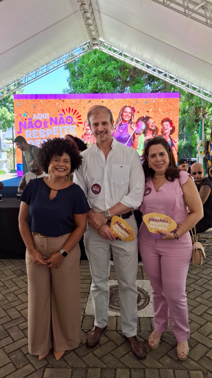 A coordenadora da Defesa da Mulher da Defensoria do Rio, defensora Thais Lima, esteve presente junto com a chefe de gabinete, defensora Luíza Lisbôa Amin Trompiere, e o subdefensor público-geral de gestão, Flávio Eduardo Lethier Rangel.