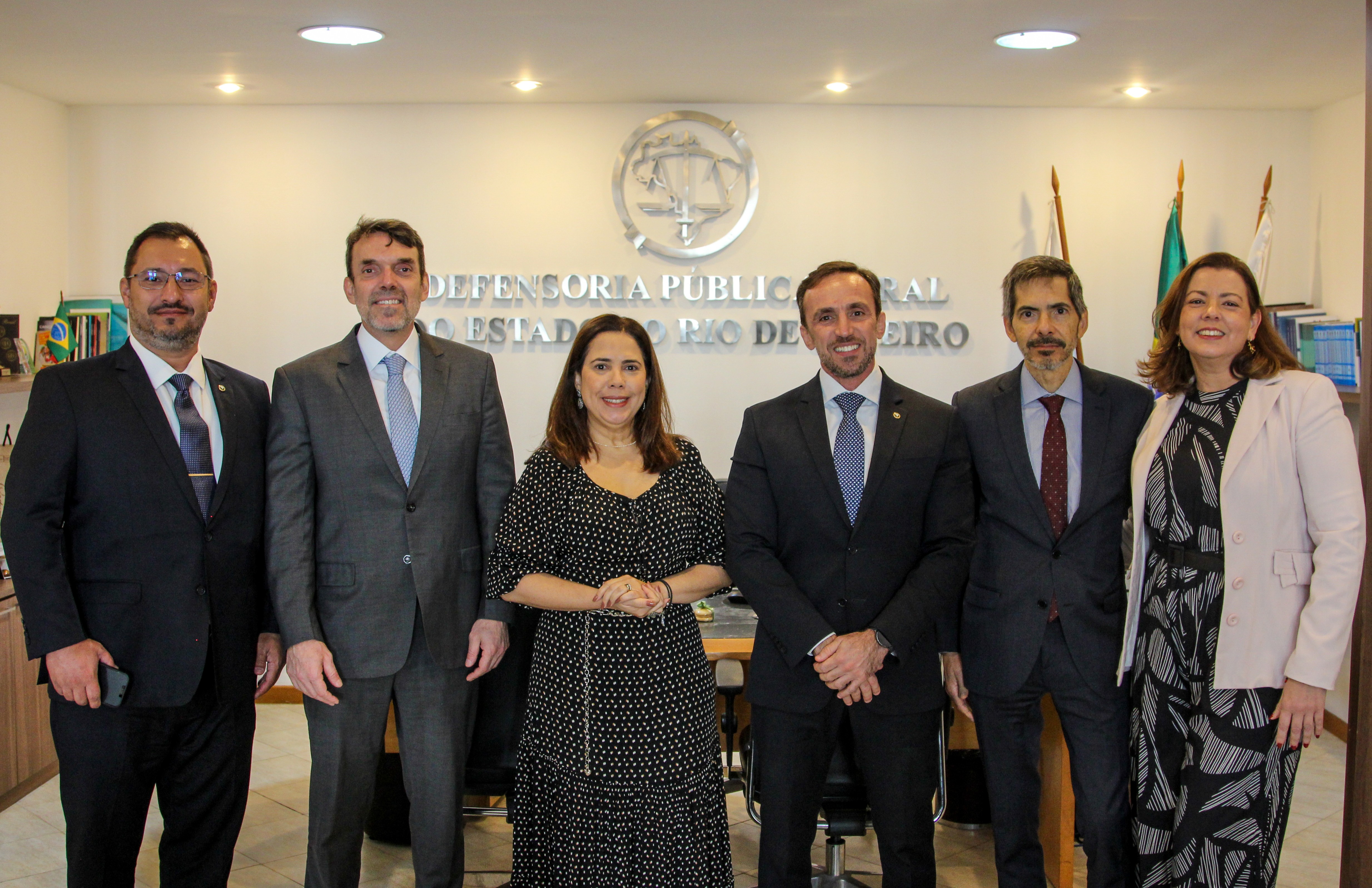 Também participaram da agenda a Subdefensora Pública-Geral Institucional, Suyan dos Santos Liberatori; a Chefe de Gabinete, Luíza Lisbôa Amin Trompiere; e o Assessor Parlamentar e de Relações Institucionais, Eduardo Quintanilha Telles de Menezes.
