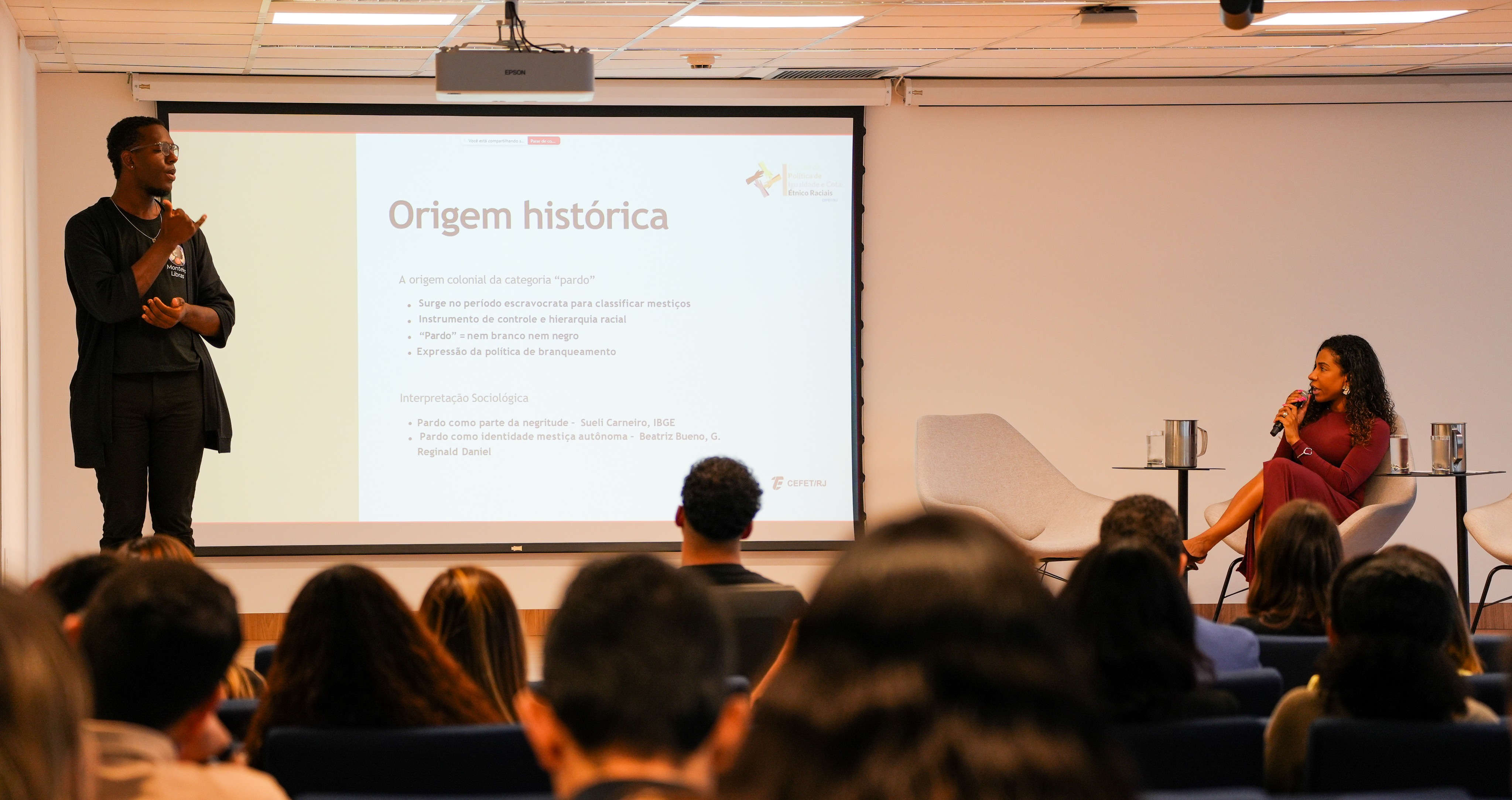 Encerrando o evento, o painel “A Questão do Pardo nas Comissões de Heteroidentificação” promoveu uma reflexão sobre os desafios e tensões envolvendo a autodeclaração da identidade parda em processos de heteroidentificação, especialmente em concursos públicos e políticas afirmativas.