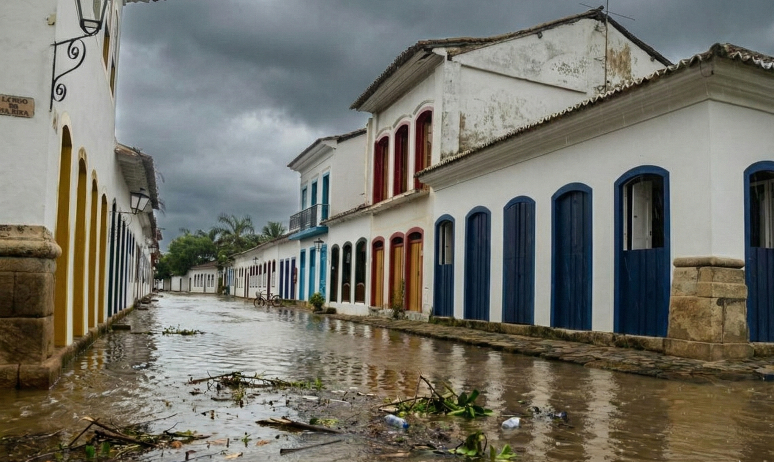 Paraty convive com um histórico doloroso de enchentes e deslizamentos. Em 2022, as chuvas deixaram dezenas de famílias desalojadas, com 219 atingidas e 150 ainda permaneceram em pontos de apoio na época. Com políticas públicas insuficientes para enfrentar eventos climáticos como esse e cada vez mais frequentes e intensos, a população segue refém da reconstrução constante, sempre recomeçando, quando deveria avançar.