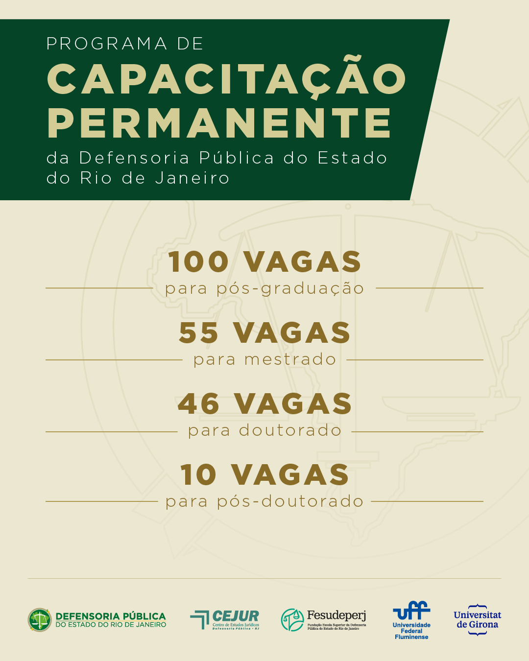A Defensoria Pública do Estado do Rio de Janeiro lança o Programa de Capacitação Permanente, iniciativa voltada à qualificação acadêmica de Defensoras, Defensores, Servidoras e Servidores da Instituição.