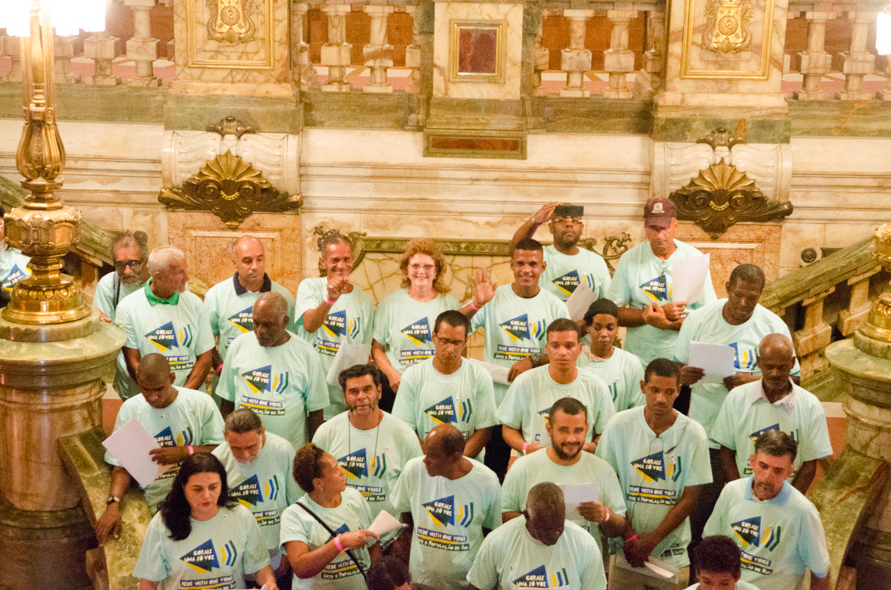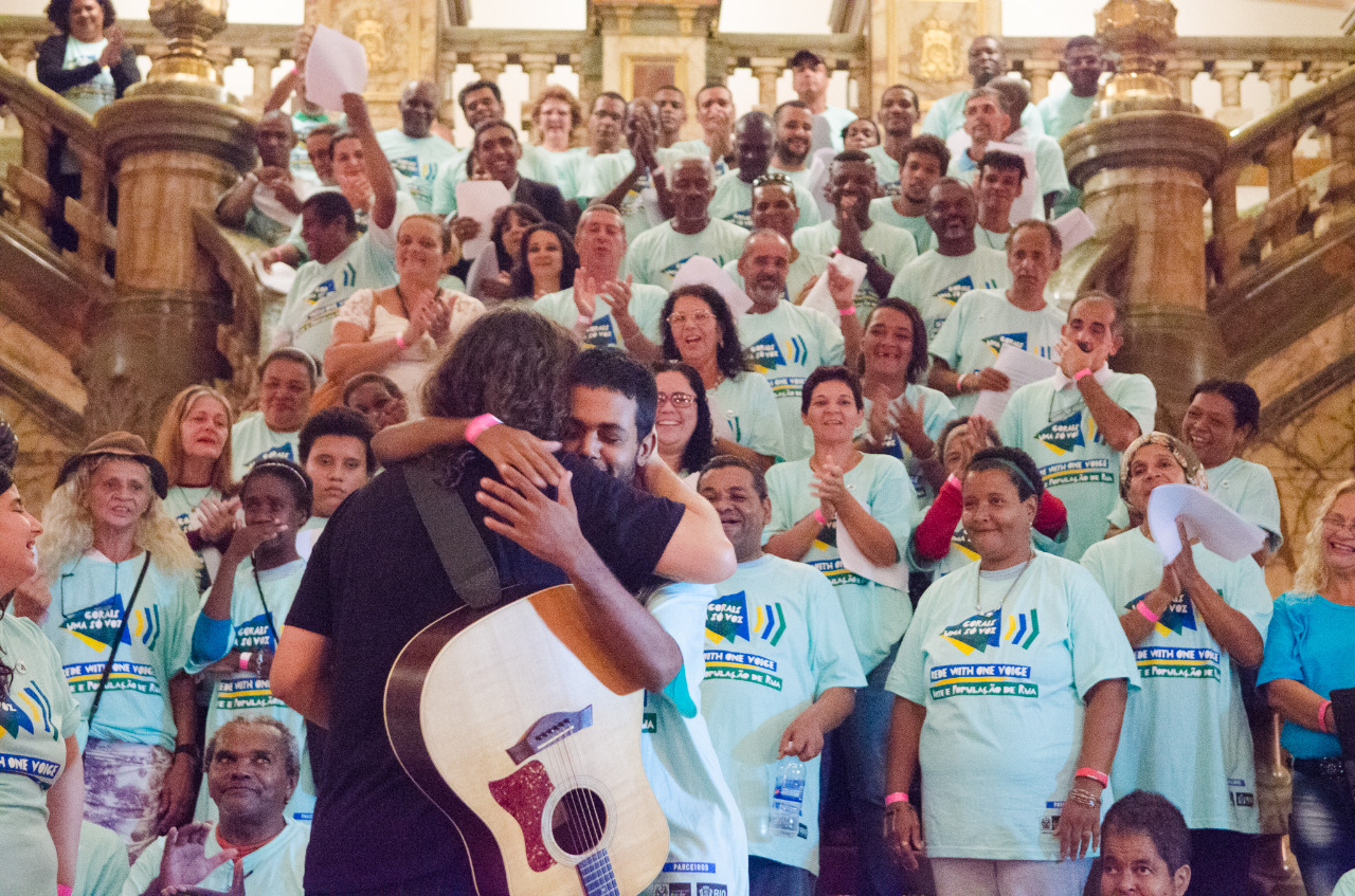 Formado por pessoas em situação de rua e também por pessoas que um dia já viveram nas ruas, o coral Uma Só voz acaba de completar um ano de existência e de apresentações realizadas com o apoio da Defensoria Pública do Estado do Rio de Janeiro (DPRJ) e de instituições integrantes da rede de Assistência Social. A última delas aconteceu na sexta-feira (5) e em grande estilo: para comemorar a data, o projeto musical levou mais de 30 cantores ao Teatro Municipal do Rio, no Centro.