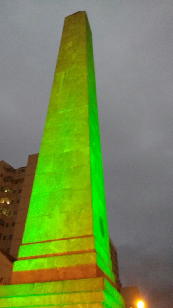 O Obelisco, na Rua do Imperador, com o verde da Defensoria Pública