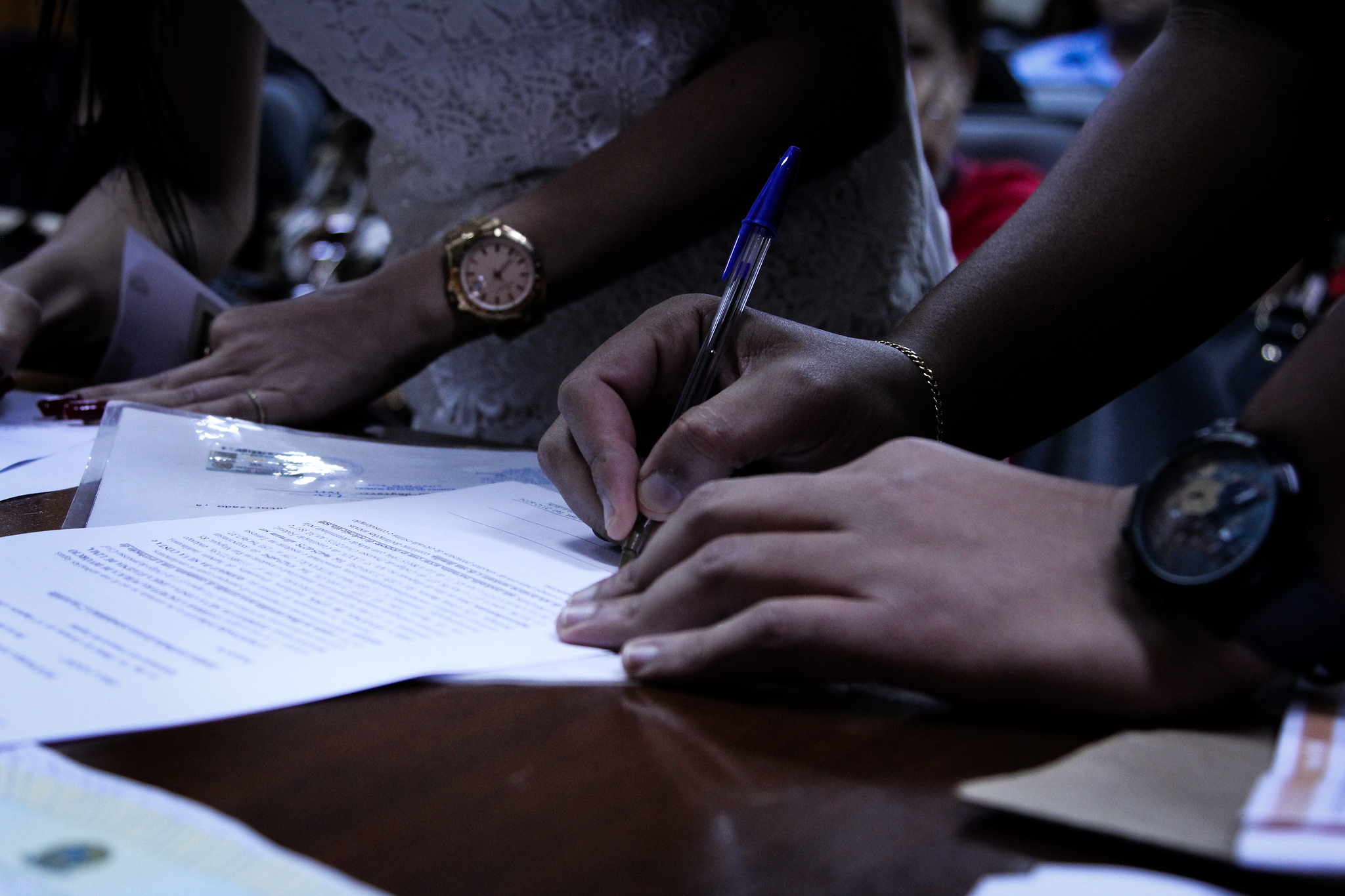 Na fila, também havia duas jovens, de 22 e 27 anos, que ficaram casadas por pouco mais de sete meses, depois de três anos de relação. O casamento também foi feito por meio da Defensoria Pública. Perguntadas sobre o porquê da decisão, a mais jovem afirmou que a ex havia pedido a separação.