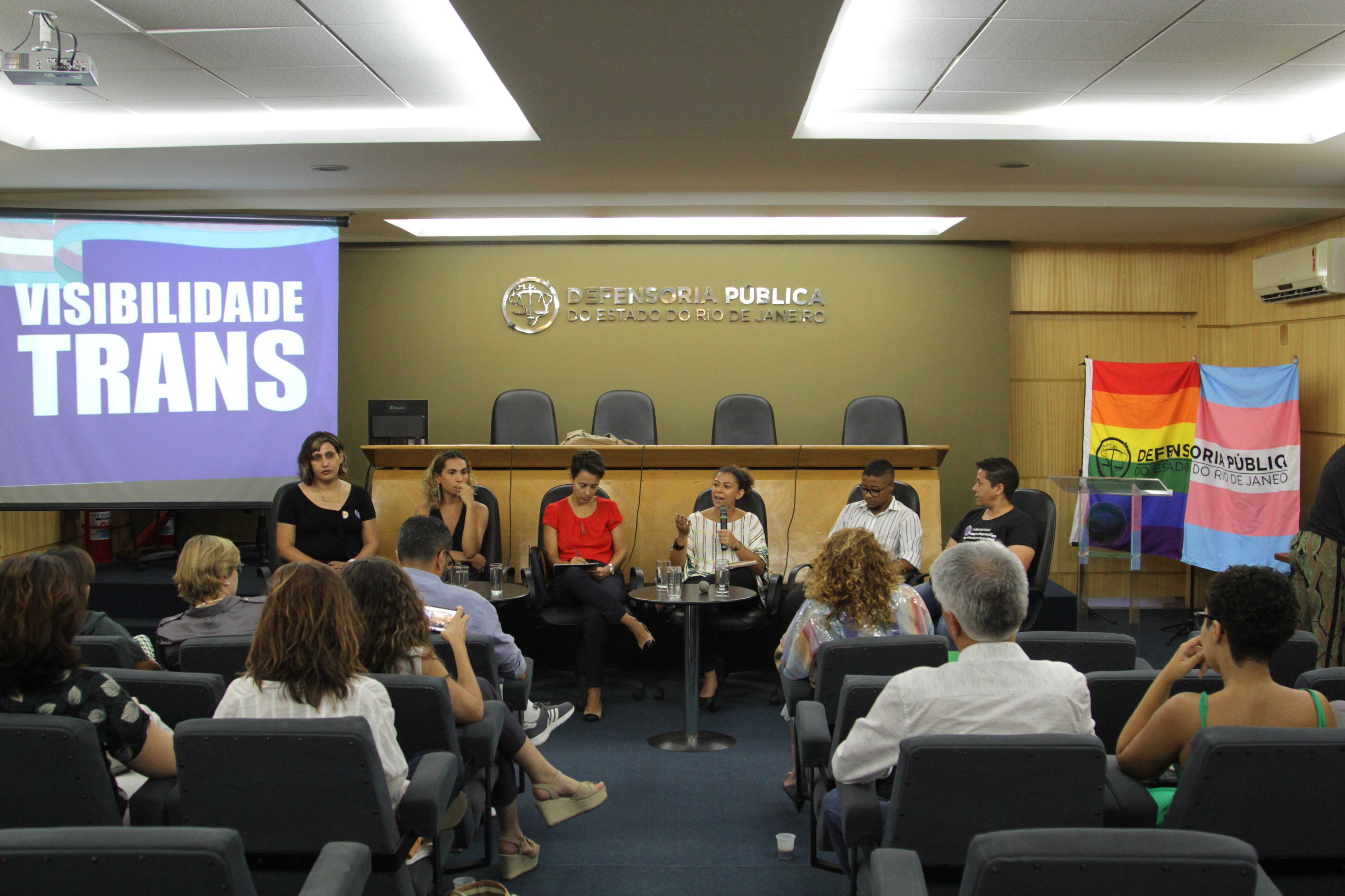 “Ouvimos muito: Mas qual é o seu nome de verdade? - Como se o nome social fosse um nome de mentira... Ou - Mas você nem parece trans!”, “Somos classificados como uma subcategoria de pessoas; somos expulsas de casa, apanhamos na rua e, mesmo assim, a principal discussão nacional é sobre os meninos terem que usar azul e as meninas rosa”, “Os crimes de ódio são altamente planejados contra nós”. Essas foram algumas frases que marcaram o evento pelo Dia Nacional de Visibilidade Trans (29 de janeiro), que ocorreu no auditório da Defensoria Pública do Rio (DPRJ), nesta quarta-feira (30). O evento, organizado pelo Núcleo de Defesa da Diversidade Sexual e Direitos Homoafetivos (NUDIVERSIS) da DPRJ, em parceria com o GT LGBTI da Defensoria Pública da União (DPU), debateu sobre a criminalização da transfobia (em pauta no STF) e a segurança dos defensores de direitos LGBTI no Brasil.