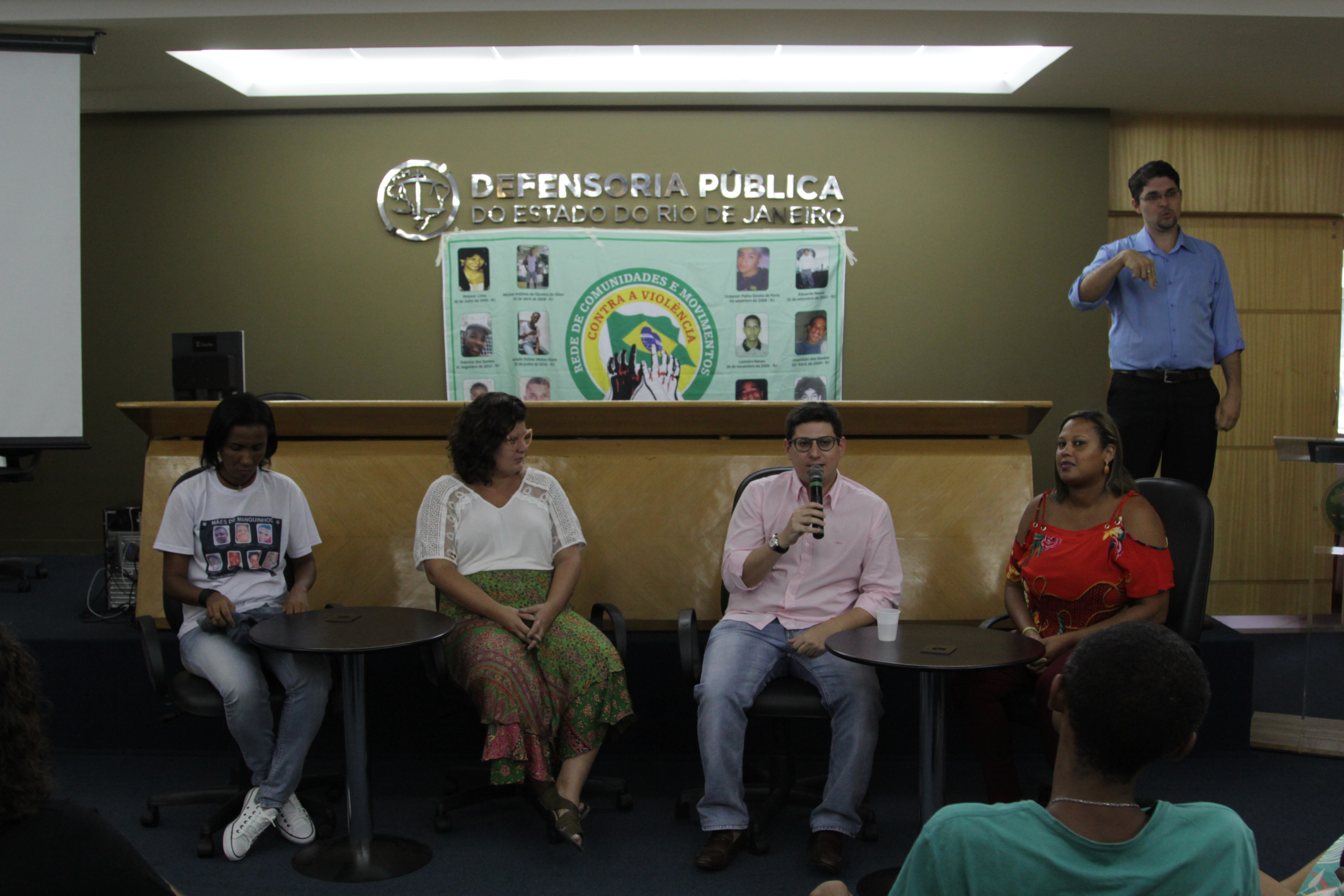 Participaram da mesa três Marinete da Silva, advogada e mãe da vereadora Marielle; Renata Neder, representante da Anistia Internacional; Raull Santiago, representando o Coletivo Papo Reto; e Guilherme Pimentel, coordenador do DefeZap (entre 2016-2019). A mediação foi feita pelos defensores do Nudedh Lívia Casseres e Fabio Amado.