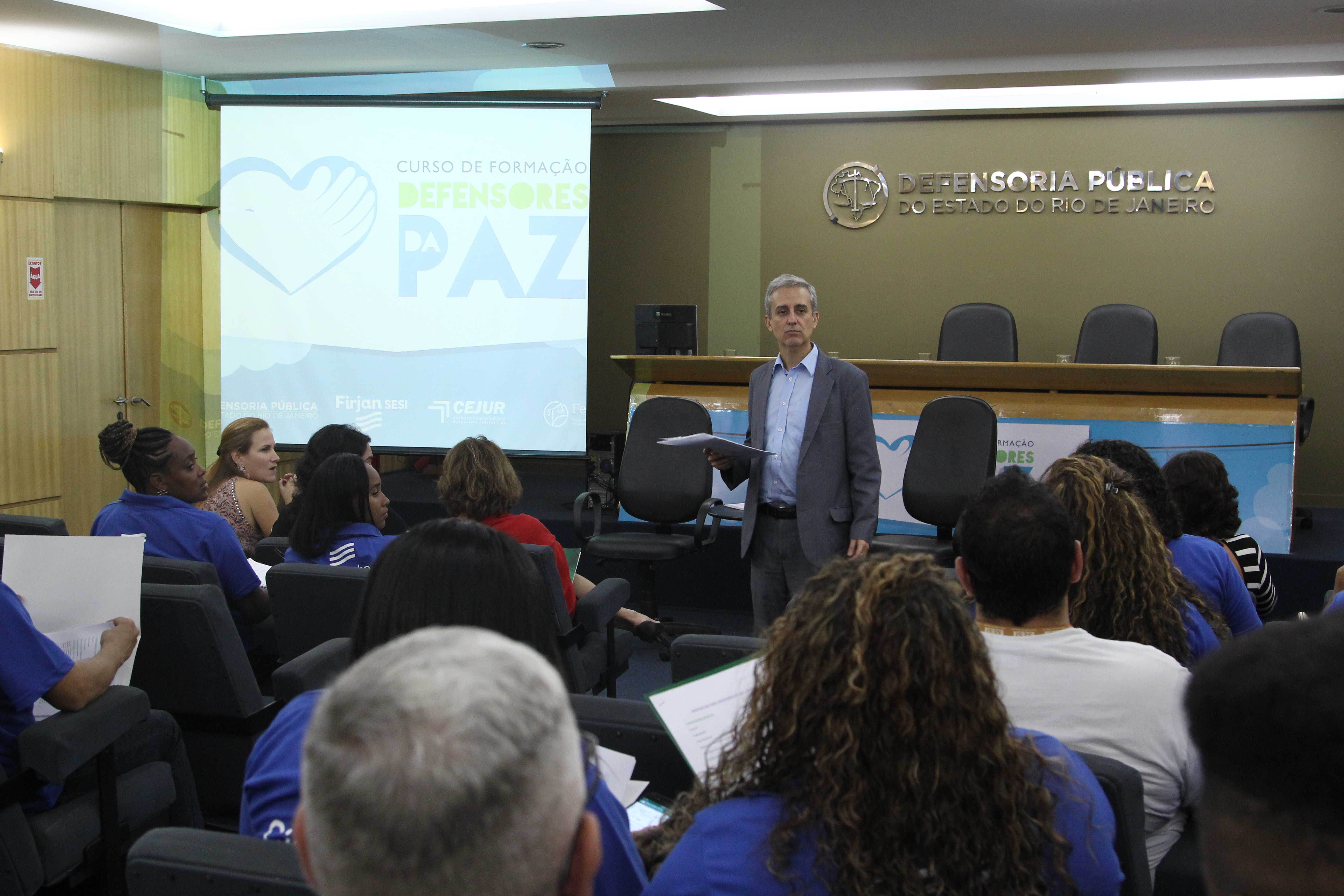 Aberta no auditório do segundo andar pelo defensor-geral do Estado, Rodrigo Pacheco, a iniciativa voltada à educação em direitos com o objetivo de fazer dos alunos multiplicadores dos conhecimentos adquiridos dessa vez acontece em parceria com a Firjan para agentes do programa Sesi Cidadania, que atuam em diversas comunidades.