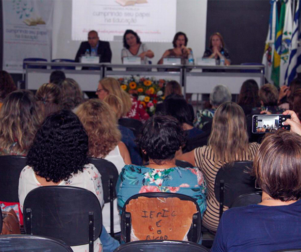 À tarde foi proferida a palestra “Conflito nas Relações Familiares” pela defensora pública Cristiane Mello, titular da 4ª Vara de Família de Niterói; e pela defensora pública Simone Gusmão; titular do Núcleo de Primeiro Atendimento de Niterói. Em seguida, a coordenadora de Defesa dos Direitos da Mulher, Flávia Nascimento; apresentou a palestra “Violência Contra a Mulher” e, ao final, a defensora pública Maria Carmen de Sá, atuante na Coordenadoria de Defesa dos Direitos da Criança e do Adolescente (CDEDICA) falou com os educadores sobre o Estatuto da Criança e do Adolescente (ECA).