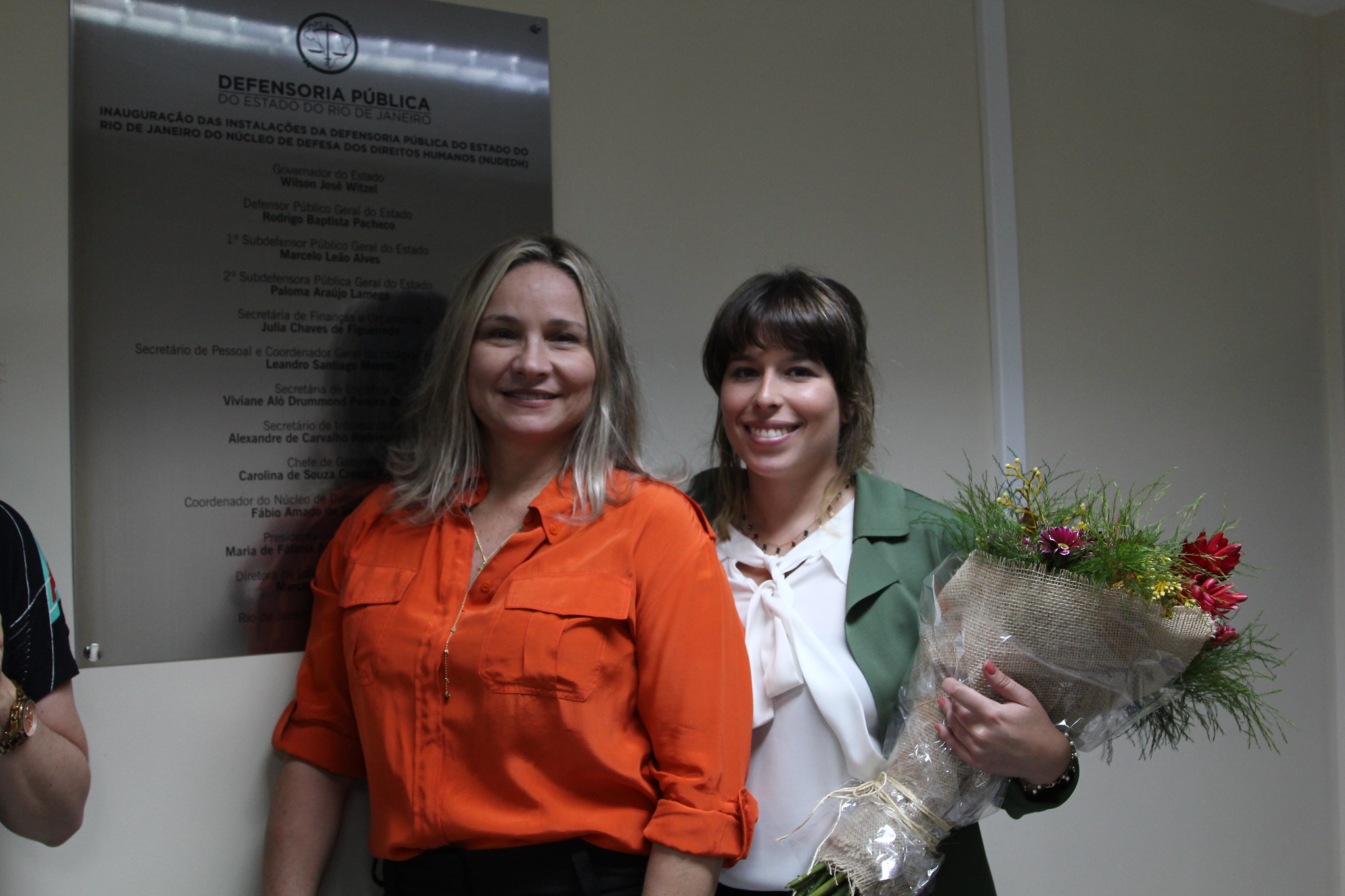 A mulher e a filha de Marcelo Bustamante acompanharam a homenagem realizada na cerimônia de inauguração da sede do Nudedh e, assim como muitos presentes, ficaram bastante emocionadas com as palavras a ele dedicadas. Ao final da solenidade, foi entregue a elas uma placa em homenagem ao defensor e um buquê de flores.