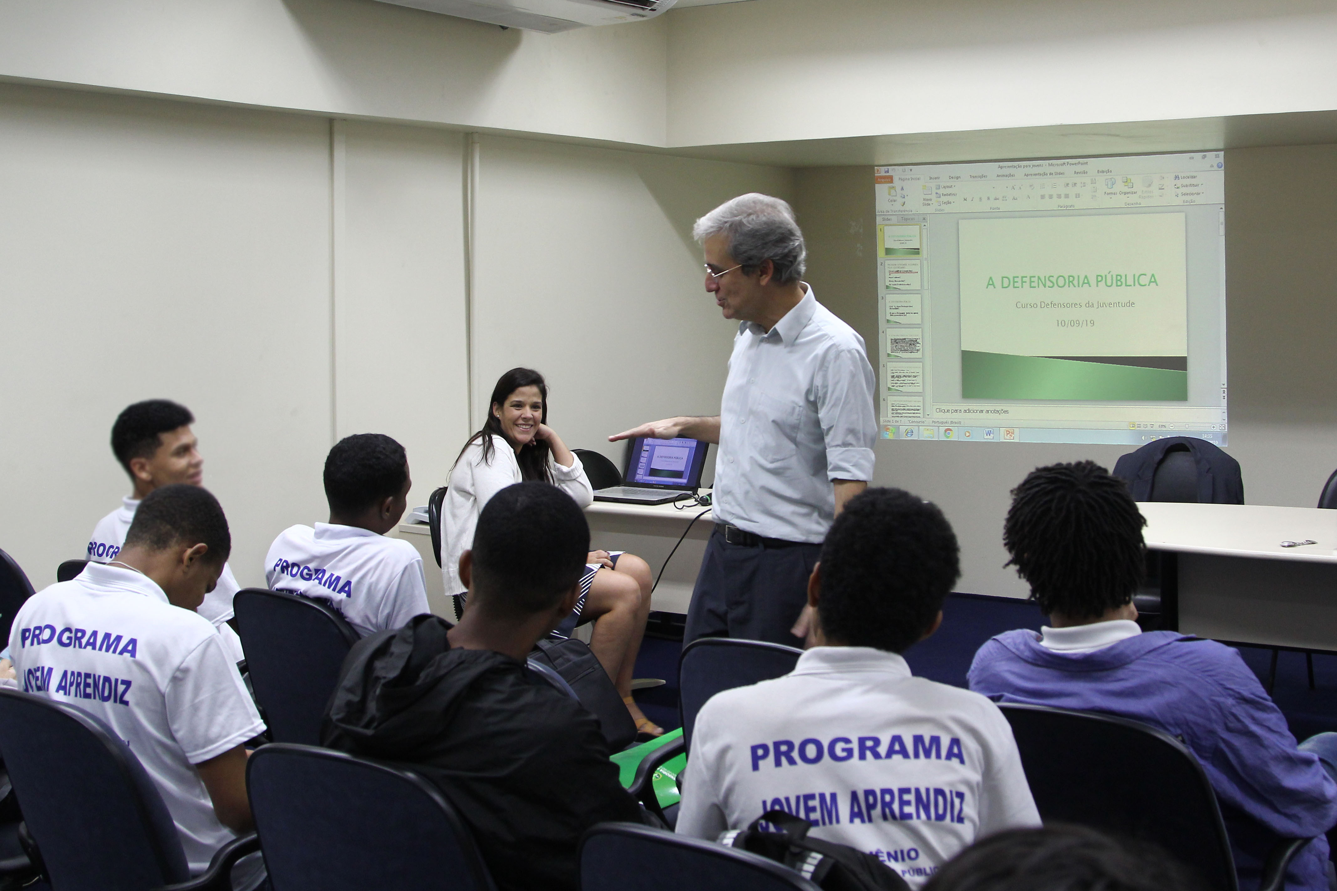 A aula inaugural contou com palestra sobre a “Defensoria Pública” ministrada pelo diretor-geral do Centro de Estudos Jurídicos (Cejur), José Augusto Garcia. O projeto “Defensores da Juventude” tem o apoio do Cejur e da Fundação Escola da Defensoria (Fesudeperj).