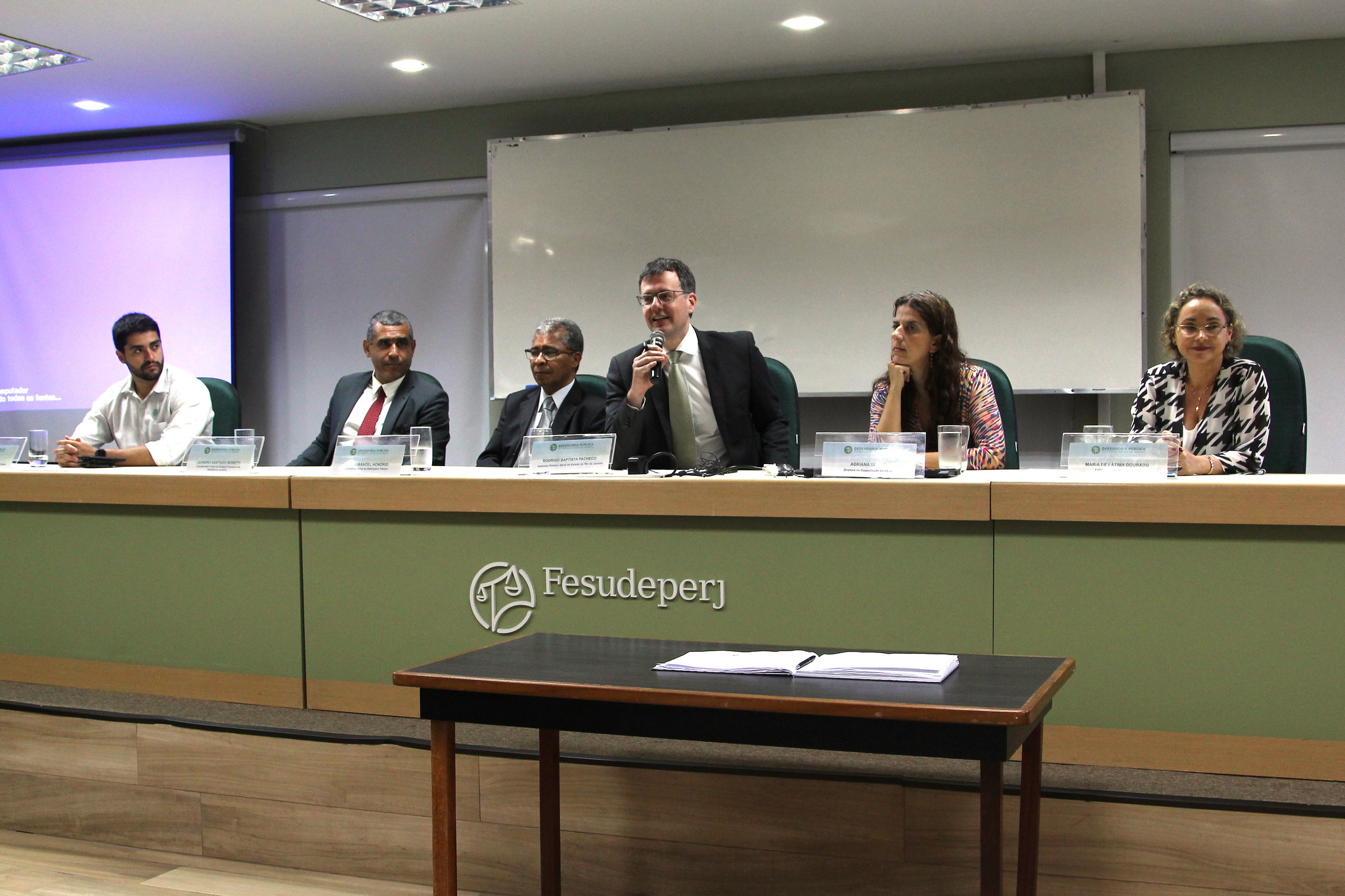 Também estiveram presentes na mesa de posse a diretora de Capacitação do Cejur, Adriana Britto; a presidenta da Fesudeperj, Maria de Fátima Dourado; e o corregedor-geral Nilton Manoel Honório.