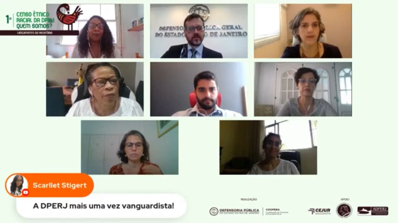 O documento foi apresentado pela diretora de Estudos e Pesquisas de Acesso à Justiça da DPRJ, Carolina Haber. O relatório se dividiu em duas iniciativas: atualização do registro funcional dos integrantes da Defensoria, que teve participação de 3.913 pessoas (79,8% do total da instituição), sendo 61,4% que se autodeclararam brancos, 37,3% negros, 1% amarelos e 0,4% indígenas. Já no formulário do Censo, no campo perfil social dos integrantes, 1.157 pessoas responderam, com um percentual de 55,1% brancos, 43,8% negros e 0,9% amarelos.