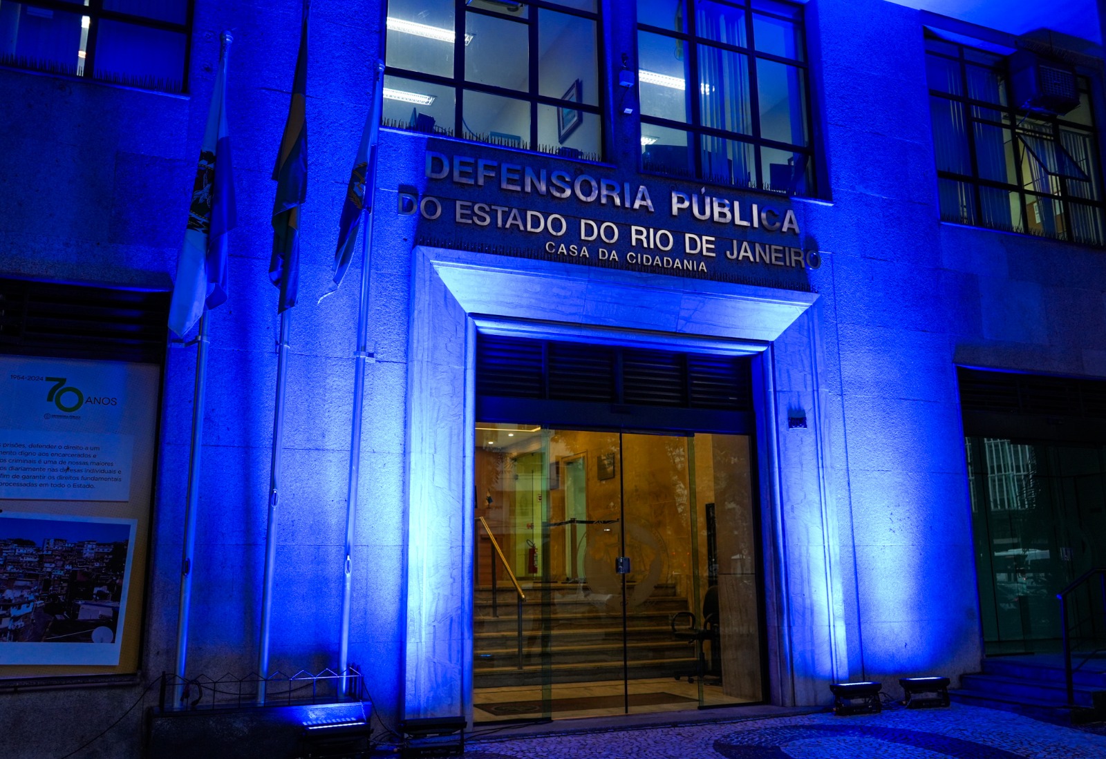 O Rio de Janeiro se iluminou em azul para celebrar os 35 anos do Sistema Único de Saúde (SUS) na sexta-feira, 19 de setembro. A sede da Defensoria Pública do Estado do Rio de Janeiro (DPRJ) e o monumento ao Cristo Redentor receberam iluminação especial em referência à cor que simboliza o SUS, conforme o manual de identidade visual do Ministério da Saúde. A iniciativa fez parte das ações da Coordenação de Saúde (Cosau) da Defensoria em parceria com o Consórcio Cristo Sustentável.