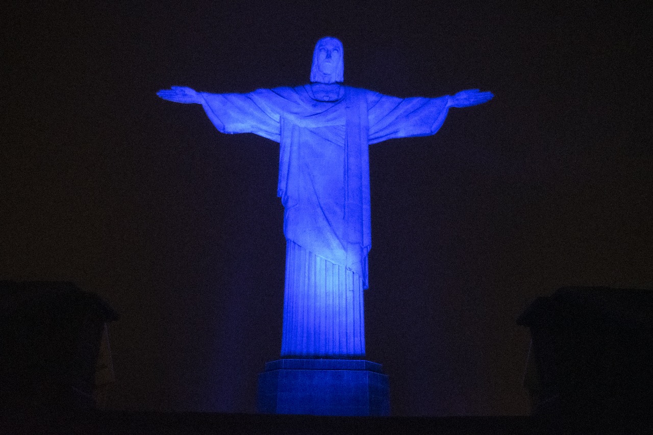 Cristo e sede da DPRJ ganharam iluminação azul em homenagem ao SUS