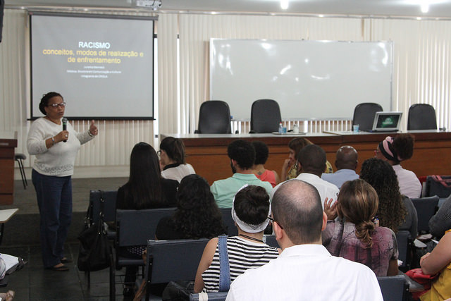– O racismo não é sutil e nem velado, é operacionalizado pelas instituições. Se a instituição não explicita a sua posição em relação ao tema, ela autoriza o racismo – disse Lucia Xavier na aula, cujo tema principal foi “Racismos, racismo: pessoal, interpessoal e institucional – conceitos, modo de realização e enfrentamento”.