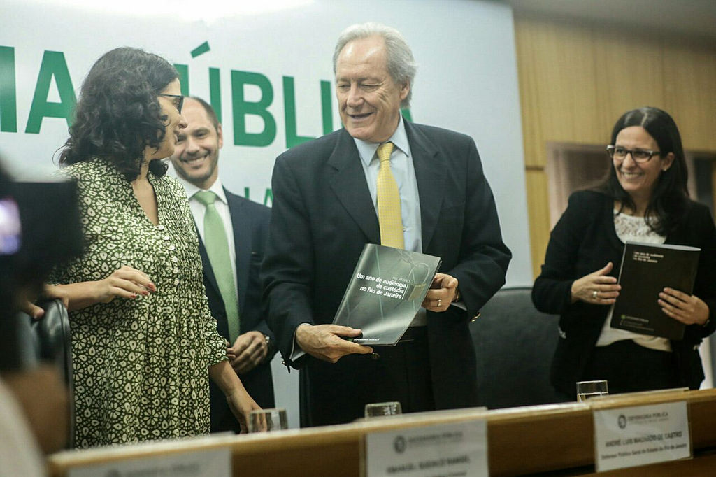 O documento foi divulgado pelo defensor público-geral do Estado, André Castro; o coordenador de Defesa Criminal, Emanuel Queiroz; e a diretora de Estudos e Pesquisas de Acesso à Justiça da Defensoria, Carolina Haber, que coordenou a pesquisa. Também participou da apresentação do documento o ministro do Supremo Tribunal Federal Ricardo Lewandowski, que capitaneou a implantação do procedimento nos tribunais do país, no ano passado, quando presidia o Conselho Nacional de Justiça; e Maria Tereza Donatti, juíza auxiliar da presidência do Tribunal de Justiça do Rio de Janeiro.