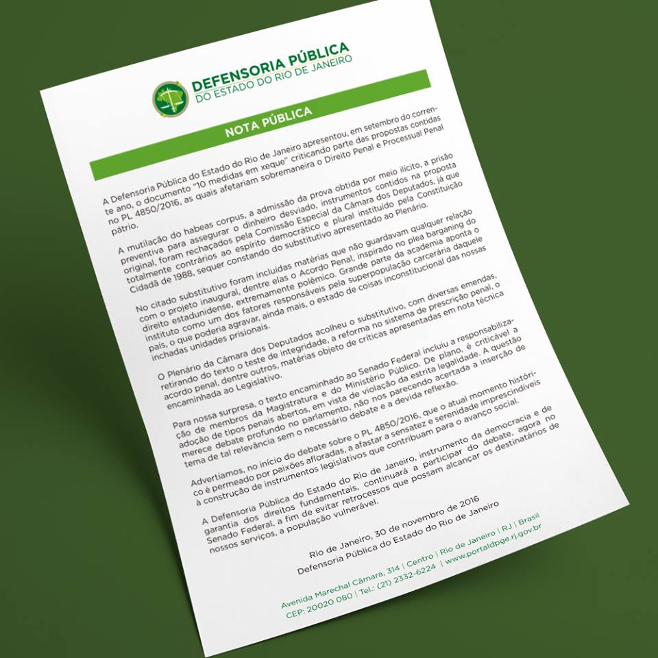 A Defensoria Pública do Estado do Rio de Janeiro apresentou, em setembro do corrente ano, o documento “10 medidas em xeque” criticando parte das propostas contidas no PL 4850/2016, as quais afetariam sobremaneira o Direito Penal e Processual Penal pátrio.