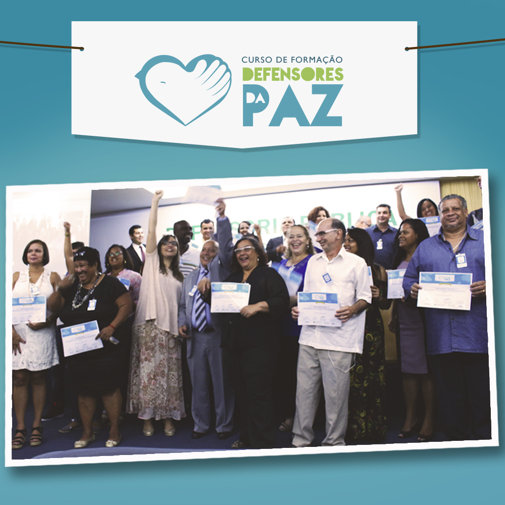 A Defensoria Pública do Estado do Rio de Janeiro (DPRJ) formou, nesta quinta-feira (8), a primeira turma do Curso de Formação Defensores da Paz. Em solenidade realizada no auditório do 2º andar da sede, os 35 moradores e lideranças comunitárias que participaram do projeto receberam diploma e crachá de identificação com a presença de amigos e familiares. A partir de agora, eles poderão atuar em suas comunidades como multiplicadores dos conhecimentos jurídicos adquiridos.