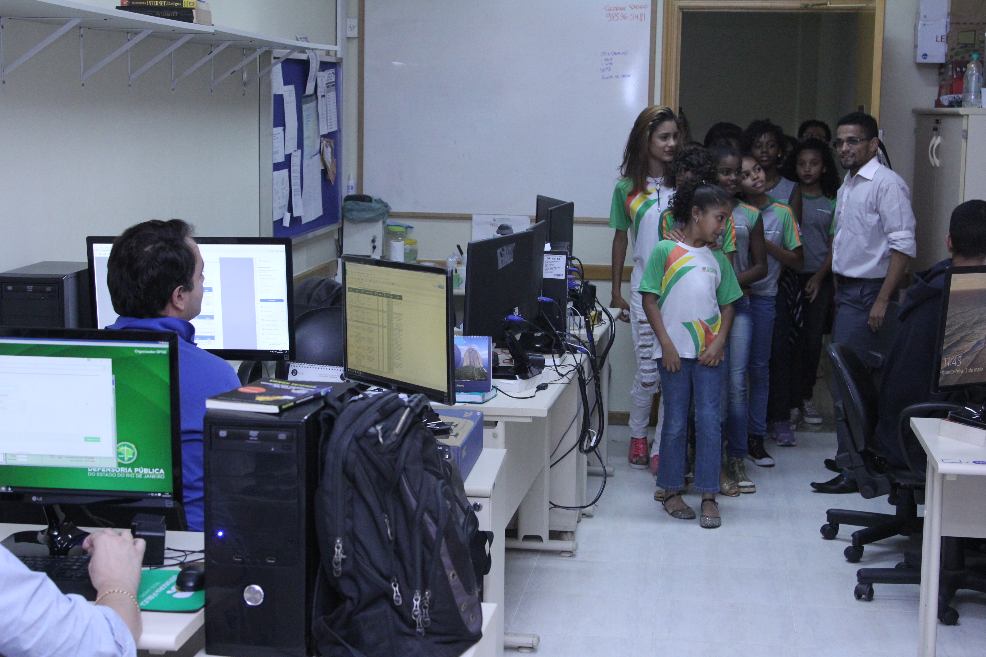 Depois de ouvir e debater, todos foram conhecer as instalações da Defensoria. Visitaram uma das salas do setor de Informática, onde trabalha Samuel Diogo, o auditório, que recebia naquela manhã o debate sobre 16 Medidas contra o Encarceramento em Massa; a Assessoria de Comunicação. Na Central de Relacionamento com o Cidadão (CRC), viram como é o call center que recebe demandas pelo número 129 e pelo site da Defensoria 24 horas por dia.