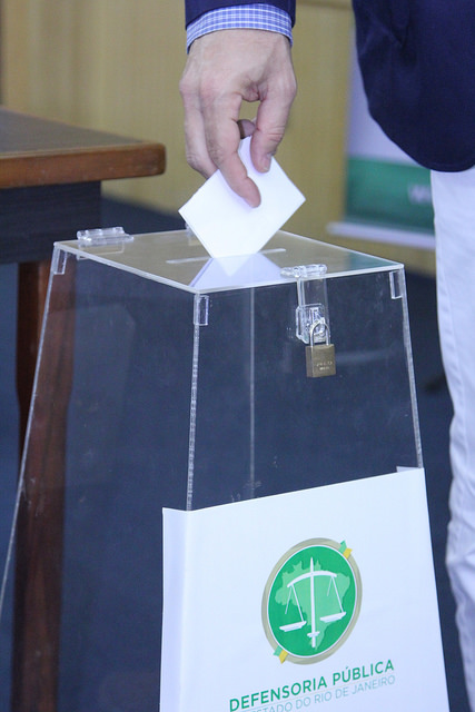 Representantes de organizações da sociedade civil formaram, nesta sexta-feira (29), a lista tríplice a ser enviada ao Conselho Superior da Defensoria Pública do Estado do Rio de Janeiro (DPRJ) com os nomes dos candidatos à chefia da Ouvidoria Geral para o biênio 2018 / 2019. Com o encerramento da eleição às 17h, a Mesa Eleitoral declarou válidos todos os votos e deu prosseguimento à apuração, obtendo, ao final, o seguinte resultado: 12 votos para Pedro Daniel Strozenberg, candidato à reeleição indicado pela Associação Casa Fluminense; quatro votos para Alan Brum Pinheiro, indicado pelo Instituto Raízes em Movimento. Não houve votos para João Ricardo de Mattos Serafim, indicado pela Associação dos Moradores e Amigos de Vigário Geral.