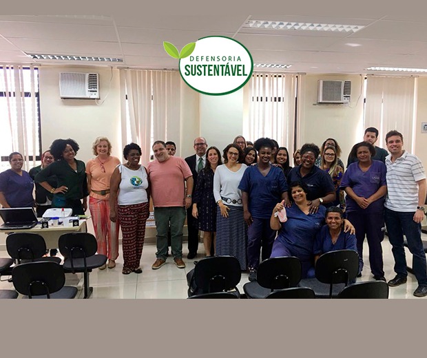 A Defensoria Pública do Estado do Rio de Janeiro (DPRJ) de Duque de Caxias, na Baixada Fluminense, realizou capacitação sobre coleta seletiva para defensoras(es), servidoras(es), estagiárias(os) e auxiliares de serviços gerais com o objetivo de orientar sobre o tema e sobre o descarte do lixo produzido no dia a dia da instituição, que passará a contar com a atuação semanal de catadoras e catadores de Jardim Gramacho. Já a partir desta quinta-feira (25), serão recolhidos para a reciclagem papeis, plásticos, metais e o que mais tiver sido previamente descartado pela equipe da Defensoria em recipientes apropriados instalados no prédio da sede de Caxias.