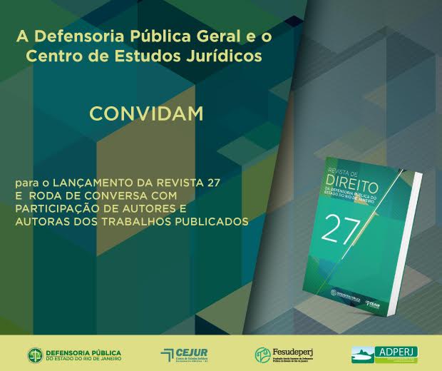 A Revista de Direito da Defensoria Pública do Rio de Janeiro nº 27 será lançada na próxima quinta-feira(17), na sede da Associação dos Defensores Públicos do Estado do Rio de Janeiro (Adperj), às 17h30. O lançamento será acompanhado de uma roda de conversa com a participação de autores e autoras dos trabalhos publicados.