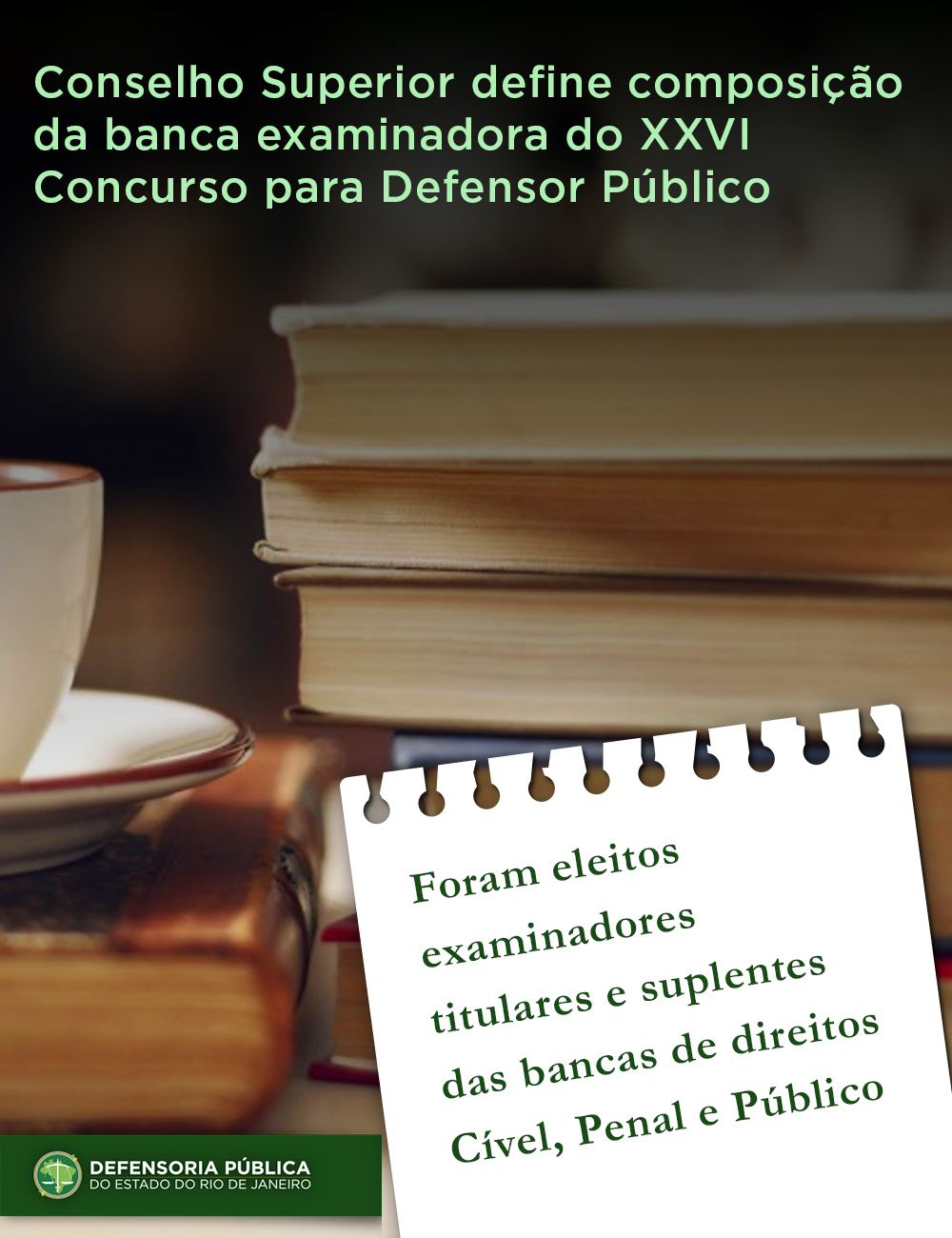 Ao todo, 21 membros da DPRJ se candidataram a uma vaga na banca examinadora. Para a Banca de Direito Civil, foram escolhidos como titulares os defensores Arnaldo Goldemberg e Rafael Renner, assim como as defensoras Patrícia Cardoso e Luciene Torres. Já para a Banca de Direito Penal, foram eleitos, além da advogada Fernanda Prates, os defensores Denis Sampaio e as defensoras Katia Varela Mello e Ana Lúcia Tavares Ferreira. Para a banca de Direito Público, por sua vez, foram aprovados o defensor Rodrigo Azambuja e as defensoras Eufrásia Maria Souza das Virgens, Ana Flavia Szchumazer e Renata Tavares.