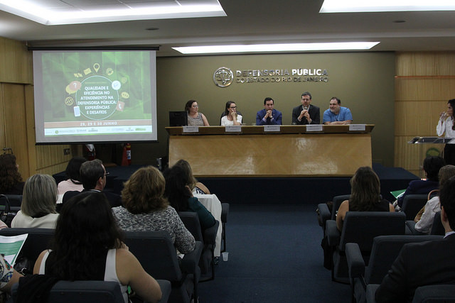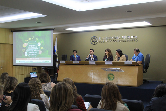 A consolidação e o fortalecimento das ouvidorias nas defensorias de todo o país e outras propostas que, assim como essa, visam à otimização dos serviços prestados nas instituições estiveram em debate, da quinta (28) ao sábado (30), no seminário nacional “Qualidade e Eficiência no Atendimento na Defensoria Pública: Experiências e Desafios”. Em três dias de programação do evento, promovido pela Defensoria Pública do Estado do Rio de Janeiro (DPRJ) e pelo Colégio Nacional dos Defensores Públicos Gerais (Condege), o tema foi discutido por defensoras(es)-gerais de vários estados, membros da carreira e servidoras(es) como prioritário sobretudo em tempos de crise, de previsão da redução orçamentária e de aumento da demanda.