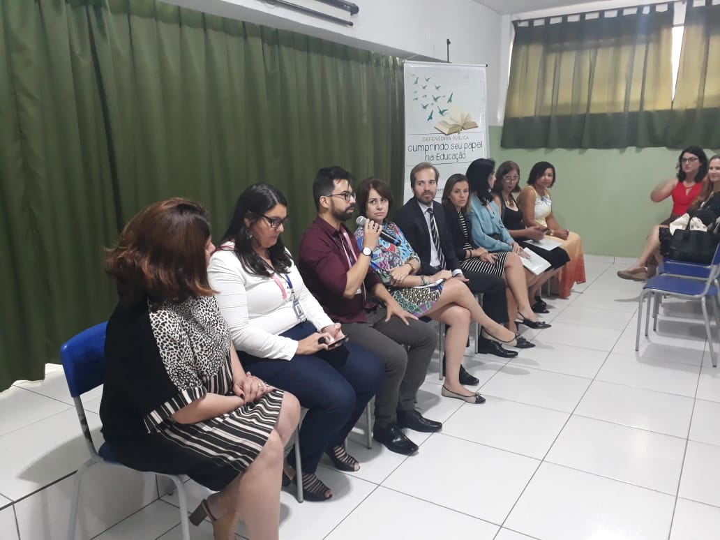 Iniciado com apresentação do espetáculo “O caminho da superação” pelo grupo de teatro Tripitaka, o evento foi aberto em seguida pela chefe de gabinete da Defensoria, Carolina Anastácio; pela subouvidora-geral, Karina Jasmin; pelo coordenador de Gestão Intersetorial da Seeduc, Charles Castro; e pela subsecretária de Gestão de Ensino, Cláudia Raybolt. Também estiveram na mesa de abertura a coordenadora pedagógica regional, Patricia Alexandre de Menezes; a defensora pública titular do Núcleo de Família de São João de Meriti, Sabrina Azevedo Castro de Carvalho; a diretora da unidade, Cecília da Conceição; e o coordenador de Defesa dos Direitos da Criança e do Adolescente, Rodrigo Azambuja.