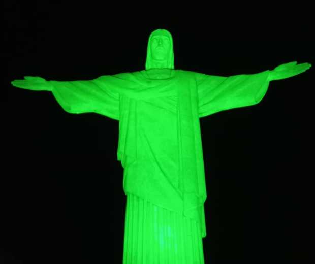O Cristo volta a se iluminar de verde na sexta (19), juntamente com a Roda Gigante, o Museu de Arte do Rio e os Arcos da Lapa em homenagem à data.