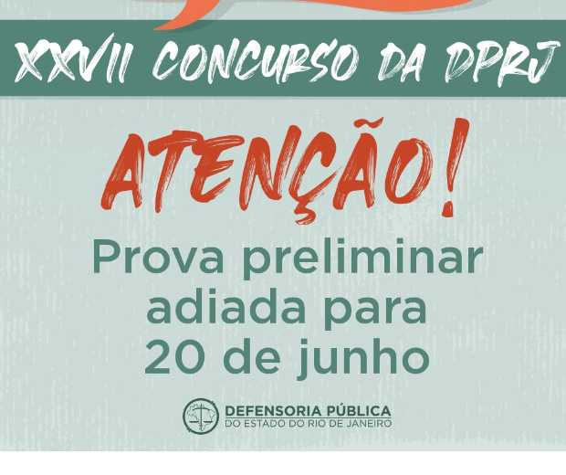 Defensoria do Rio adia prova preliminar do concurso para defensor público para o dia 20 de junho de 2021.