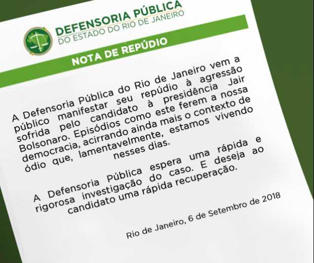 A Defensoria Pública do Estado do Rio de Janeiro repudia o atentado contra a vida de candidato à presidência e espera que o caso seja investigado