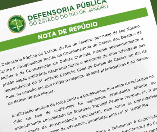 A DPRJ repudia veementemente a prisão ilegal, arbitrária, desproporcional e vexatória de uma advogada nas dependências do 3º Juizado Especial Cível de Caxias