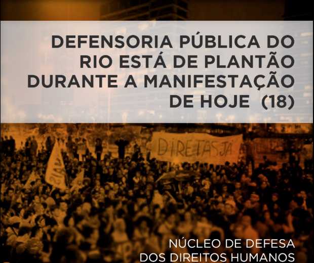 A Defensoria Pública do Rio de Janeiro, o Ministério Público e a Ordem dos Advogados do Brasil vão acompanhar os protestos programados para esta quinta-feira, 18