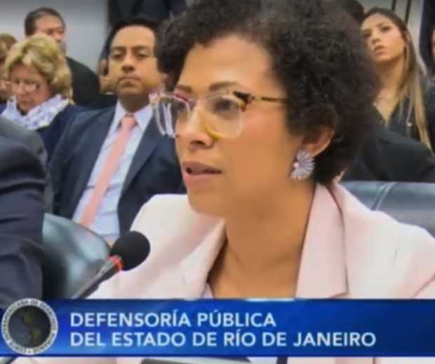 A defensora Lívia Cassares, coordenadora do Núcleo de Defesa da Diversidade Sexual e dos Direitos Homoafetivos, participa audiência pública na CIDH