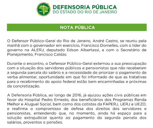 Em nota pública, Defensoria reafirma o compromisso de defesa dos direitos dos servidores e pensionistas e entende que ainda há espaço para uma solução extrajudicial